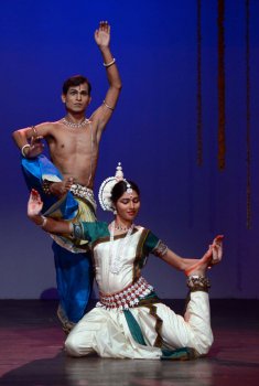 Shivapriya School of Dance celebrates silver jubilee - Lalitha Venkat e-mail: lalvenkat@yahoo.com Photos: Srivatsa Shandilya June 30, 2013 Kuchipudi and Bharatanatyam dancer Sanjay Shantaram celebrated 25 years of his dance institution Shivapriya School of Dance with a three day festival Nrityantara (its fourth edition) from June 25 to 27 at Bangalore. The festival showcased the talent of established as well as upcoming artistes. The inaugural function took place at the compact Seva Sadan where the stage was aesthetically designed with a row of diyas bordering the front of the stage. The celebration took off with a spirited Kuchipudi recital by talented dancer SV Gopal Krishna, a disciple of Sanjay Shantaram. He presented a kirtana by Saint Thyagaraja “Bala kanakamaya chela” in Atana raga in which Thyagaraja pleads for blessings and support of Lord Rama, who in his benevolence helped and blessed his many devotees. He laments, “Why do you not bless me and come to my aid?” The uncluttered jewellery, neat costume, leaps and confident footwork impressed the rasikas. The next item was the popular devarnama “Baro Krishnayya.” As a devotee, Kanakadasa pleads with Krishna to play with him by luring him with butter, praising his flute playing and so on. In his announcement, Sanjay Shantaram said that usually Narayana Teertha’s tarangams are performed but nowadays adaptations are being done, and he had specially choreographed “Baro Krishnayya” into a tarangam format concluding with dancing on a brass plate. Gopal Krishna performed with all the verve and vigor typical of a Kuchipudi recital, even doing lip-sync for most of the lines. Kuchipudi’s soft, flowing movements are needed in places and the dancer looked more like he was grabbing little Krishna instead of cajoling and embracing him. ![]() Gopal Krishna ![]() Pavitra Bhat The next performer Pavitra Bhat from Mumbai commenced with a melaprapti combined with alarippu in khanda chapu with Ganapathi Stuti. The dancer exuded confidence in his every move. The Hanuman Chalisa of 40 verses written by Tulsidas in praise of the vayuputra was choreographed by Bhat’s guru Deepak Mazumdar in a varnam format. Nritta, nrithya and abhinaya all shone in the neat 30 minute varnam specially choreographed for the festival. Bhat said that it was a challenge for his guru to transform the religious verses into dance format and the challenge for him as a dancer was that since none of the 40 verses could be cut down, he had to perform continuously with no chance of taking a breather (he anyway never looked out of breath!). The vocal was by P Rama, jathis by the late Guru Kadirvelu, nattuvangam by Deepak Mazumdar. Both Gopal Krishna and Pavitra Bhat did well in executing the ideas of their respective gurus. ![]() Bishwa Mohan Mohapatra & Soumya Sikta Sahoo The finale was an Odissi duet by Bishwa Mohan Mohapatra from Odisha and Soumya Sikta Sahoo (presently learning under Madhulita Mahapatra). Bishwa Mohan is the first recipient of the Protima Gauri scholarship from Nrityagram in 2009. Divya Kundalam was the invocatory item on Lord Shiva telling the tale of Kamadeva striking Shiva with his arrow and Shiva then reducing Kamadeva into ashes. The choreography was by Guru Gangadhar Pradhan. Pallavi in raag Shankarabharanam was a choreography of Guru Kelucharan Mohapatra. The final item was “Chandana charchita” choreographed by Kelubabu to music by Bhubaneswar Misra showing Krishna flirting with the gopis. The lighting was subtle and enhanced the romantic mood and postures. It was Sowmya’s first major recital on stage and she tried her best to keep pace with the experienced and assured Bishwa Mohan. She was wearing a pleasant costume in the first place but decided to wrap around another garment on top of the existing one in the final item, making it look clumsy. Fortunately, all the recorded music worked well for the evening with no tech glitch but the compere Kaladegula Srinivas could have been less eloquent. ![]() KC Rupesh & Sneha Bhagwat On day two and three, the programs took place at Ravindra Kalakshetra. Day two that featured all Bangalore based artistes started with a Bharatanatyam duet by KC Rupesh (disciple of Chitra Vinod) and Sneha Bhagwat (disciple of Sanjay Shantaram). They had collaborated a couple of years earlier for another festival and are members of the 4 member group Maya. The first item featured pushpanjali choreographed by Chitra Vinod and Ganesha Stuti by Sanjay Shantaram. The second item sung soulfully by Srivatsa was Thyagaraja’s “Naada tanumanisham” in ragam Chittaranjini choreographed by the dancers themselves. The finale was a thillana in raag Bageshree sung by Balasubramania Sharma and Manasi Prasad. One could see the dancers were talented, had boundless energy and they danced in sync with each other, but their adding elements from other dance styles like Kuchipudi and Bharata Nrithyam invited advice from chief guest Prof. MR Krishnamurthy that, “ if you perform one traditional dance form, stick to that and do not mix it with other forms.” ![]() BP Sweekruth and Manasa Joshi Next was a Kathak duet recital by BP Sweekruth and Manasa Joshi. Both are solo artistes who worked together in 2011 and since then have collaborated on special projects. They commenced with vachana of Basaveshwara in praise of Lord Shiva, “Swami neenu shashwatha neenu” sung by Ganesh Desai and choreographed by Sweekruth. The dancers performed well together with good command over footwork. Manasa then presented “Lalita lavanga” a solo choreographed by Guru Maya Rao and sung by Shankar Shanbag. Sweekruth’s Jhap Taal pure nritta solo in cycle of 10 beats to music by Neeraj and choreographed by Maulik Shah and Ishira Parikh was well appreciated by the audience. Madhurashtakam set to music by Asit Desai and sung by Sanjiv Abhyankar depicted episodes from the life of Krishna. It was choreographed by Sweekruth. At times, the lyrics a