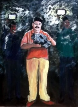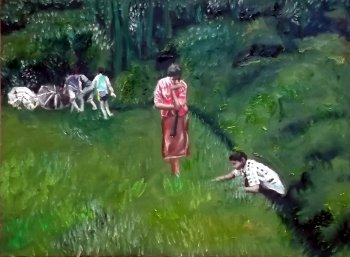 Biju Mekkayyil, who showcased thirty of his paintings, reminded me of the many street artists passionate about their art. Based in Kozhikode, self taught, the artist paints just for the sake of painting. Sponsored by a group of like-minded friends, he exhibits his paintings in different parts. A rustic simplicity emanates from the quiet artist. So do his paintings. Mazhakapu was a display of various moods of the monsoon, a beloved event for the people of the subcontinent. He has used various techniques to project his ideas and moods. PAPER BOAT welcomes you. The girl who sends a paper boat in a rivulet created by the rains is poetic and poignant. It pushes you down the stream of your childhood memories. It is symbolic of life’s journey. For a girl, it suggests departure from her own home crossing alien shores to destinations unknown. The empty boat seems overflowing with intangible dreams and the stream stands for the transience of life. MEMORIES OF ONAM, oil on canvass, is another painting that evokes nostalgia. The water drenched green hill slope with tiny flowers celebrates the harvest festival of Kerala. Children gathering flowers for making flower carpets to welcome the mythical King Mahabali is a colorful part of the event. ![]() Memories of Onam