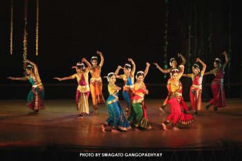 Paschime Rabi by Kalamandalam Kolkata - Nita Vidyarthi e-mail: drnitav@rediffmail.com Photos courtesy: Kalamandalam Kolkata July 25, 2013 Songs of Tagore based on Western melodies, Irish and Scottish tunes to be more specific, have been presented innumerable times with different permutations and combinations of their original versions but a choreographic presentation entitled Paschima Rabi (the Western Sun) on the theme by Guru Dr. Thankamani Kutty and Kalamandalam Kolkata at Rabindra Sadan as a part of Nikhl Banga Nababarsha Utsav Samity, is perhaps the first one. Somnath G. Kutty comes up always with interesting ideas and this one is no exception. Conceived and directed by him, the presentation incorporated western classical style of social dancing- ballroom dancing like The English Waltz ,Viennese Waltz, Foxtrot, and Latin American Salsa, Samba and contemporary styles side by side with Bharatanatyam and Kuchipudi for the Rabindrasangeet renditions. ![]() Opening with a group presentation in Bharatanatyam set to the song “Alo Aaamar Alo,” the dancers of Kalamandalam proved their training and team work dancing joyously with this ever popular melodious number. Often heard numbers in Scottish tunes like “Phuley phuley dhole dhole” and “Purano sei diner katha” adapted from “Ye Banks and Braes” and “Auld Lang Syne” respectively were also included. The Western classical dance numbers were by Pedro S Kundu (who has also directed the western numbers) and Rony Roy and the Bharatanatyam and Kuchipudi ones by senior dancer Malabika Sen. Malabika, known for her abhinaya and singing talents, was naturally convincing as a lovelorn nayika in “Aha, aaji e Basantey” based on the Irish number “Go where the glory waits Thee.” Senior dancers Malabika Sen, Jhinuk Mukherjee, Jalsa Chandra, Moumita Chatterjee, Soumita Ghosh, Jayita Ghosh, Ashesha Sahalina Basu, Tania Dewanji and Sejuti Sengupta participated.