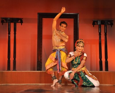 After the ‘Pravesha Daruvu’, Ajay continued into the act of ‘Ranguga Naa Meda’ where Satyabhama is imagining her marriage with Krishna. This particular excerpt has become a rarity even among Kuchipudi dancers. Most times, this is overlooked from the other popular acts in the opera. Ajay’s abhinayam as Bhama was exceptional. She ends that act with the famous ‘Lekha,’ the letter she writes to Krishna. The beauty of the Telugu language was worth seeing in Ajay’s highly theatrical Vaachikaabhinayam, one of the trademarks of Kuchipudi. The second part of the performance was the entry of Krishna. As Sathyanarayana Raju entered to ‘Raajeevaakshudu Raajagopaludu’ set to ragam Reetigowla as Lord Rajagopala, the dynamics between the two dancers was noteworthy. Nitish on flute was timely by venturing into ‘Yentha Muddo, Yentha Sogaso’ in Bindumalini as Krishna taunts the tantrum throwing Bhama. As Krishna asks Bhama ‘Kopamelane,’ the tenderness of the ragam Kuntalavaraali came through in Vasudha’s singing, even as Prarthana went off-notes at several points. Towards the end at a point of divine reconciliation of Krishna and Bhama, both the dancers displayed their technical virtuosity. Shakuntala Prabhat’s powerful nattuvangam paired with Srinivas’s for the Kuchipudi held the dance sequences together along with Gurumurthy’s mridangam. The jugalbandi ended with a Thillana in ragam Brindavana Saranga composed by Dr. Mangalampalli Balamurali Krishna. Ajay Kumar is easily one of the more promising youngsters around to take the fading Kuchipudi legacy on. Bangalore rasikas must thank Usha for inviting him to be a part of this festival. Day 2: What do divine housewives do? The second day of the festival was a jugalbandi between Odissi by Sharmila Mukherjii and Bharatanatyam by Soundarya Srivatsa. After a Pushpanjali and an invocation to Lord Ganesha, they performed a Kali Koutuvam set to Mishrachaapu talam. With great control over laya, Soundarya displayed her artistry. Sharmila took a while to warm up. It was only by the second half of the ‘Pallavi’ that one could see her get into form.