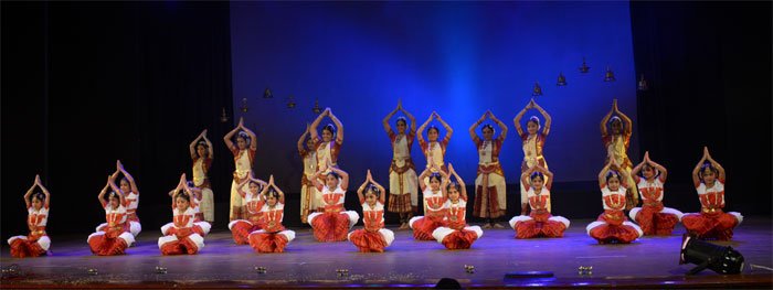 Drishti Nrityarpana - Veena Murthy Vijay Photos courtesy: Drishti September 8, 2013 Drishti Art Centre presented a grand vision on wings of culture by the disciples of Anuradha Vikranth of Drishti Art Centre in their annual celebration Nrityarpana on Aug 22, 2013. The scene in Chowdiah Memorial Hall was most happening as the crowds were gathering an hour before the performance. The evening began with the tiny tots swarming the stage with their tiny feet and colorful costumes. The spirit of dance kindled even the audience to the vibrant music as these little clusters of stars danced. There were four dances presented by the junior group of the school. All the four were different in their presentation, beginning with Pushpanjali-Ganapati Vandana, Allaripu Mala, Chatushloki, Jathiswaram and an exclusive dance, paying rich tribute to Karnataka's rich architectural wonder, the Belur temple. The dancing sculptures come to life and dance in the temple of Chennakeshava, the presiding deity of Belur. This was the composition of D.V. Gundappa, the celebrated poet of Karnataka. All the dances were lively. The choreography was carefully knit with inner patterns and formations, bringing in both style and harmony. ![]() Ganapati vandana ![]()