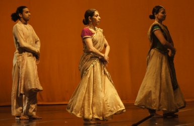 The second part of the performance, ‘Unwrapped’ began with the pakhawaj players on stage with their backs to the audience. The dancers wore cream coloured costumes with their faces wrapped with their dupattas. The group performed a classical nritta piece. Then they mimicked like a faceless creature looking into the mirror. Aditi then recited lines from poetry by Kashmiri poet Lal Ded, translated by Ranjit Hoskote. “Wrapped up in yourself you hid from me all day, I looked for you.” Amazing nritta to the clanking sound of manjiras was followed by padhant. Then it was total stillness. Next, it was footwork by the dancers as if conversing with each other in thaap. Aditi did interpretative dance to a composition by Sant Kabirdas – “Kehat kabir suno bhai sadhu, nis din sai hamara, is ghat antar bagh bagiche, isme seenchan haara. Is ghat antar anhad garje, isme uthat phuhara.” The background started changing to a radiant yellow. The nritya was expressive and Aditi’s chakkars had awe-inspiring energy and pace. “Wrapped up in Yourself, You hid from me and when I found You hiding inside me, I ran wild, playing now me, now You,” Aditi recited. The entire group joined her for nritya on ‘Aajra din dooba’ by Pandit Kumar Gandharva and ‘Yaar ko hamne jabaja dekha, kahin zahir kahin chhupa dekha’ by Hazrat Shah Niaz. The entire group exhibited breathtaking abhinaya and classical nritta in the two compositions. The speed, energy and footwork were flawless. The music composition for the piece was by Mahesh Vinayakram. The costumes were designed by Aditi herself. Tabla by Mohit Gangani and pakhawaj by Ashish Gangani as always was mind blowing. The lights complimented the performance. Vocals and harmonium by Faraz Ahmad was very melodious. The costumes and dance according to my interpretation showed humanity as becoming a faceless entity devoid of all emotions and sensibilities. All that defined it is hate. “To understand yourself, you must create a mirror that reflects accurately what you are – only in the understanding of what is, is there freedom from what is,” said J Krishnamurti. But what will the mirror reflect when the object is faceless? The final section of the performance is about attaining enlightenment. It is only when you journey within yourself and after the covers of other emotions are removed that the eternal truth surfaces. “Aajra din dooba, ab to jag re.” It is only when the cycle of life reaches its dusk that man awakens to the truth. It is when the truth surfaces and unwraps these complex emotions that you come face to face with the Almighty, who is referred to as the ‘Yaar’ or lover. We are a part of Him. If He is the sun, we are the lamps. All that He requires of us is to remember Him while fulfilling our worldly duties. But we allow the ‘maya’ to take over and wrap ourselves in negative emotions like hate and brutality. It is only when we unwrap ourselves of these emotions that we find Him within ourselves and the boundaries between ‘you’ and ‘me’ collapse and become ‘You’ only. What follows is the ecstasy of the union. “Yaar ko hamne jabaja dekha, kahin zahir kahin chhupa dekha.” It was indeed a very complex theme to portray in dance but Aditi and her group of dancers did a mesmerizing job. It was flawless and left the audience spellbound. “I found myself inspired by the emptiness and eternal space of the siddha sculpture.” Aditi referred to the siddha sculpture of Lord Mahavir, standing with his hands on his sides. The entire sculpture creates a vision of cosmic space and an out of body experience. On being asked whether she subscribed to some particular belief, she simply said, “Humanity.” The dancers in the group were Dheerendra Tiwari, Piyush Chauhan, Amit Khinchi, Preeti Sharma, Karan Gangani, Shubhi Johari and Minhaz Khan, and of course, Aditi herself. About the production and what triggered it, Aditi says, “The whole process began a few months back, when we were pondering over the various levels of dialogue between male and female. We were examining the dialogue between Shiva-Shakti. But last year, some horrific events of brutalization of females, which we were reading about in the news, were a trigger to look beyond the equation between male and female, to comprehend what is happening to human beings in general. So it’s been a change of perspective to an interplay between good and bad, hate and love, male and female, brutality and humanity. If there are changes in a person at the age of 15 or 16 that bring out the brutal side in him, it has to be analyzed. Hence, we began with mythological stories of Shiva-Shakti, Brahma desiring his daughter, the story of Amba, Ambika and Ambalika, and trying to associate them with present social events. But finally, we removed that layer altogether and we concentrated on the socio-economic causes of behaviour that is unthinkable, be it from man to man, woman to woman or man to woman. We finally removed the gender bias. For a dance piece, we need a core to conceptualize, so the core of the production is an exploration of our inner self. Something like a mirror that shows ‘this is you.’ Sometimes we do not accept the image that we see. We do not want to accept reality. When we recognize reality, we come closer to finding the sky within us. But for that, coming to terms with the reality is essential. I think Salman Rushdie put it very pertinently, when he said, ‘Classically, we have defined ourselves by the things we love. By the place which is our home, by our family, by our friends. But in this age we’re asked to define ourselves by hate. That what defines you is what pisses you off. And if nothing pisses you off, who are you?’ The production is actually disturbing and not always very pleasant to watch.” View Slide show ![]() Photos: Dinesh Khanna Shveta Arora is a blogger based in Delhi. She writes about cultural events in the capital. |