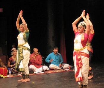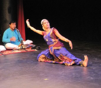 Dance Symposium at Rutgers-Newark - Marisa Pierson October 8, 2013 A symposium on classical Indian dance was recently presented by the Rutgers Institute on Ethnicity, here in Newark, featuring Ramya Ramnarayan and the Nrithyanjali Institute of Dance. The free, daylong symposium featured a lecture/demo with Ramya and one of her students at noon at the Newark Museum in which Ramya explained the complex classical form of Bharatanatyam dance to the audience, myself among them. We were able to try some of the intricate mudras or hand gestures as well as other dance movements. Ramya’s explanations were good and very precise, and we came away with a much deeper understanding of this beautiful dance form. In the evening, the Institute presented Ramya, 3 dancers and 3 live musicians from India in an hour-long inspirational concert of Bharatanatyam at the Bradley Hall Theater on Rutgers-Newark campus that was both powerful and moving. The program included the exciting varnam, a fast-paced number that demonstrated the technical skill of the dancers, and the eloquent ‘Rusali Radha’ that speaks of the love between Radha and Krishna. Ramya and her expressive gestures told the story of Radha and Krishna to the audience before the actual performance, leading to a more meaningful understanding of the dance itself.