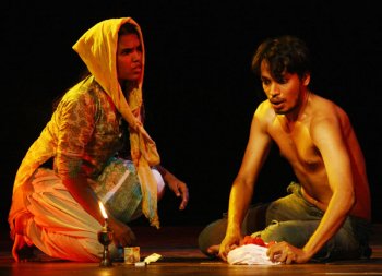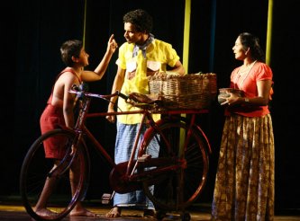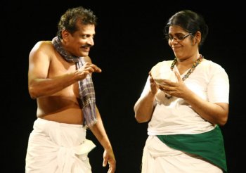 The changing profile of theatre in Kerala - Padma Jayaraj e-mail: padmajayaraj@gmail.com Pics courtesy: KSNA October 11, 2013 There was a time in the cultural history of Kerala, when theatre as a movement fuelled social and political reforms. Even villages boasted of drama troupes. Since television conquered a prominent niche in households, performing arts have been relegated from the centre stage of social life. However, lovers of drama are trying to change the situation for the better. Kerala Sangeetha Nataka Akademi has taken it as its duty to promote theatre. Hence we had this gift of Amateur Theatre Competition 2013. Six dramas were selected for the final round from performances at various venues. Inaugurated by S. Ramanujam, a renowned director in the field of drama, the competition kick started on September 26, 2013 for a period of six days, at the Akademi Hall in Thrissur. Amateur theatre, as the term suggests is passionately involved in dramaturgy. As a genre it focuses on experimental theatre. As such, each production showcased the changing profile of theatre in Kerala. The Saints of Anna Louis was the first play staged by Magical Theatre Forum, Thrissur. It was an attempt that highlighted the social malaise of our times. Organized crime against women, children and the weak is the theme of the play. Institutions that were sacred collude with criminals today. Religious bodies that ministered to the spiritual needs and hospitals that took care of the afflicted are now interested in making money. They have become as disgraceful as sex rackets. In short, what the news media has been scanning is brought under the lens for a close examination. As the play starts we see a cemetery. In pouring rain Anna Louis buries her daughter Sophy. Slowly, the rituals of burial acquire shades of irony. In an aside, the priest, who consoles the bereaved mother, confesses his fascination for her physical charm. The technique of flashback is used to narrate the story of Sophy’s happy days on the threshold of youth and her innocent friendship. She accompanies her aunt to a textile shop to buy a dress to celebrate her 14th birthday. And from there she mysteriously disappears. Information reaches Anna that her daughter is in the hospital. At the hospital a closed box is handed over to her with the strict instruction not to open it. The coffin moves on to the cemetery under the eyes of the priest. The distraught mother questions her guardian angel. In the twilight realm of grief where rationality is at a discount, the mother holds on to a moment of epiphany. And the martyred souls lead her through the by lanes of crime and anguish. In a surreal mode the stories of missing people, hospitals that sell organs, sex rackets that kidnap children and AIDS that kill both men and women flit like phantoms. Embryo: Women centered themes are gaining momentum in the performing arts of Kerala. NANMA, Kozhikode, puts forward an unusual theme. With a depth of insight, the play introduces an unconventional love story wrought with psychological, emotional and ethical dimensions. Set in a problematic situation two young women embark on an odyssey in search of true love only to find it transcends the borderline of gender. And as a value, love demands a great deal of sacrifice. Immath and Ansara, two young married women live in an apartment caught between the land and the sky. Their intimacy started in their college days and they contrived to marry brothers. Estranged from their families, visited by husbands who come as migratory birds from the Middle East, they live together in comparative affluence. They spent time shopping, making merry, and reading as the wealthy young tend to do. Kahlil Gibran, the famous Persian poet is their favorite. Singing of Sufi love, they live and love in a rarified land far above the mundane. Maternal instinct is a natural urge that both of them have. Possessive to the core, the stormy yet intimate relationship moves around Embryo, pregnancy both real and imaginary. For each one of them their very survival rests on becoming a mother. In fact, Ansara’s husband has given her the ultimatum that to be childless can end in divorce. For Immath, to be the mother of a child is one way of controlling its father, her perennial source of livelihood. Alone in their homeland, at odds with their families, they dream of flying to their husbands who work in the Middle East. The palm tree that decorates their living room is the symbol of their aspirations. Yet both of them are upset whenever they hear the sound of a helicopter. Such nuances mark the contours of their complex liaison. And both of them yearn for a child. Fate decides Immath to be pregnant. The primary test they conduct at home proves it. She loves Ansara so much that she does not have the heart to tell her friend the truth. Instead, she declares Ansara is going to be a mother. Overjoyed, Ansara wants to convey the news to her husband, wants to go home to be reunited with her family, the natural and cultural practices that conformists do. Immath just delays the decision which clouds their understanding. Confusion leads to quarrel and to parting. Finally, Immath is forced to confess the truth; forced to prove her love…. by destroying the embryo to the pain and dismay of her companion. The play ends with the two lines of Kahlil Gibran echoing of soulful love beyond the mundane. Manjulan Perunthata who won the award for best director has done good job in dramatizing the story of women living beyond the heterosexual framework in orthodox Muslim background. The problem of female sexuality is implied even when companionship and loneliness are the unambiguous issues. That diversity is the signature of nature where deviants and mutants are the norm in her order is another message the play delivers. Persian strains highlight the culture of the women who enjoy Khalil Gibran. Arab music reverberate their dream of reaching the land of Arabia. Lighting re