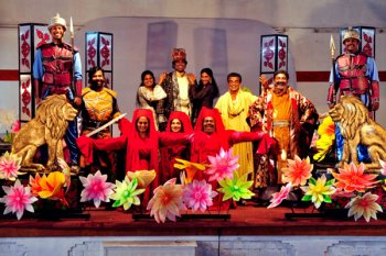 Macbeth recast - Padma Jayaraj e-mail: padmajayaraj@gmail.com Pics courtesy: Kalidasa Kala Kendra October 26, 2013 Macbeth, the Shakespearean tragedy, found a free adaptation on stage by a professional troupe, Kalidasa Kala Kendra, Kollam, Kerala. The play was performed in the Regional Theatre hall, under the aegis of Fine Arts Society, Thrissur, on the day of Mahanavami. The company has a longstanding reputation in the social and cultural history of Kerala. Founded by the veteran artist O. Madhavan, the troupe has fuelled social upheavals at theoretical level to educate the masses. Time and technology has changed a lot with the second generation handling the reins now. Madhavan’s wife Vijayakumari, their son cine actor Mukesh, and their daughter Sandhya Rajendran, are at the helm. The troupe has a respectable place in the field of professional theater in Kerala. The play is their 53rd attempt on stage. Scripted by Pradeepkumar Kavunthara and directed by E.A. Rajendran, the play is a striking stage show that transforms an Elizabethan drama into a story of political ambitions and its fallout that resonates with contemporary political upheavals. ![]() A court scene (the 3 witches in red) ![]() Macbeth and the witches as embodiments of his dark ambitions Set in the feudal background in Scotland, the play unfolds as in the original. Against the sound of galloping horses and battle cries, the stage bathed in red light reveals the silhouette of two soldiers locked in combat. Soon the victorious Macbeth and his friend and companion Banqo appear celebrating their victory in crushing a rebellion, happy to serve their king and content in feudal values. Almost on the heel we see the 3 witches, as in the original. They, like mushrooms born of soil, are poisonous evil fused to life on earth, the binary opposite of the good. As in the original, they meet Macbeth in thunder and lightning. The storm that they ride on turns the world of Macbeth upside down. From then on, the characters acquire the dimension of representations and the play moves on at two levels: the inner versus the outer world. The hidden ambitions become the centrality of the theme. Both men and women are introduced as power hungry, stalking in the alleys of forts and castles using wine, women and enchantments for power brokering. Away from the humdrum world of human existence they inhabit a dark world of plotting and politicking, a world where greed dominates. Partial fulfillment of the prediction, his own hidden desire for the throne, and the ruthless nagging of Lady Macbeth push Macbeth towards assassination. And with it the feudal values collapse. One crime leads to another as existential exigencies and Macbeth strides his brutal path like a titan. Deviating from the original, in this play Macbeth kills his onetime bosom friend Banqo. Then he sees Fleance, Banqo’s son fleeing from the scene. Fear haunts him now. He again goes to the witches who quibble on words giving impossible guarantees to fool him. Once Macbeth ascends the throne, Lady Macbeth finds the tables turned on her. She understands how her own doings hound her; the women whom she trapped to please the king now trap her to please themselves. As Macbeth ascends in cruelty, she slips down faltering on the ladder of ambition. She becomes a shattered woman, true to its innate nature. As parallel lines that move in opposite directions, the central characters choose their separate trajectories, carved out by human nature, to doom. ![]() Macbeth and Lady Macbeth plotting to usurp the throne ![]() Macbeth trapped in evil (the 3 witches) Meanwhile, we hear that the heir apparent accompanied by Fleance seeks political asylum in England. From there helped by other feudal chieftains they prepare for war. The people groaning under the tyranny of Macbeth rise against him in guerrilla warfare. When ‘Birnum Wood marches towards Macbeth’s castle’ as foretold by the witches Macbeth loses his nerve. Yet, as a valiant soldier he must fight to the last. In tragic grandeur, Macbeth leaves for the battlefield. There, Fleance challenges him to a duel to avenge his father’s murder. Fleance had been like a son to the childless Macbeth. Human weakness overwhelms him. Unarmed, Macbeth falls a victim to Fleance, to poetic justice. The adaptations are successful to a great extent. The witches of the original play make their appearances in other scenes like the Greek Chorus. Their presence in a different costume in the sleepwalking scene is noteworthy. Their actions whenever and wherever they appear are to stand for evil, which adds to the representational quality of the drama. Asides and soliloquies of the Shakespearean drama are replaced by cinematic song and dance sequences to project psychological realism, an important theme in the play. Music and choreography suit the occasions. The use of Western music forming part of background score has good effect. Stage properties are effectively used to build castle, fort, and battle scenes. Costume makes the play a period drama in form with an eternal theme of greed for power. Modern technologies of sound and lighting add to the impact of the show. Actors have done justice to their roles. Yet there are some loose ends. The concept that soldiers are born only to be killed in battle is jarring in a play set against feudal values. The suggestion of Macbeth coming from the lower segment of society creates some confusion. The social undertones which have no relation to the plot cloud the clarity of the play. Political overtones in the dialogue make this Elizabethan drama a representational play of our times. Sex as a tool for corruption is a modern ploy that we see in this play. That women are as ruthless as men in scheming, shatter all romantic notions. In Shakespearian world ‘character is destiny.’ Here, basic human nature defeats both Macbeth and his lady. Fleance represents the youth fighting their battle against usurpers and the corrupt, s