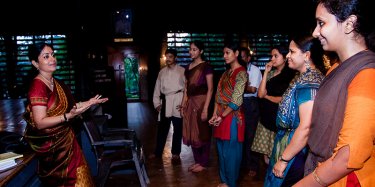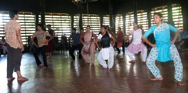 The participants were flying in the air enacting warriors in the first five days as they attended the Mayurbhanj Chhau sessions. The workshop was led by Rakesh Sai Babu, son and disciple of Janmejoy Sai Babu, a pioneer in the art form. He was supported by Sunil Mehra in handling the sessions. The word Chhau is derived from the Sanskrit word chaya and the aim is to reflect the entire nature and its life through precise body manoeuvres. Chhau dance traces its origin to the tribal culture of Orissa. Those days, the purpose of the dance form was to motivate the warriors going to the war field. No wonder, with sword in one hand and shield in the other, Chhau will surely make one think of the other martial art forms. Chhau dancers often appear wearing masks, but in Mayurbhanj Chhau the dancers perform without wearing any masks which makes it unique. A Chhau performer makes use of her/his whole body to express movement, actions and bhavas. Like every other dance, Chhau too has distinct basics which were discussed during the sessions. Chatta (jumps), khura (twists), patla (skywalk) and chamak (shoulder movements) were a few among them. Most of the chatta and khura resembled the movements of animals like tiger, deer, crab, monkey etc. Certain movements resembled the slow motion of village ladies and they were referred to as usli. The walking style mentioned as chali, had six variants. Chhau, as a dance form, has its own lasya and thandava components. Certain movements are reserved for females whereas certain chattas are designed solely for male performers. Good body control, flexibility and balance are greatly required to perform Chhau which can be only acquired through many years of hard work and practice. The participants had the opportunity to understand Chhau and were able to experience it through their body. They were encouraged to push away from their comfort zones slowly and were taught to keep the balance and stability while doing the moves. It was a new way of experiencing one’s own body, its capabilities as well as limitations. Rakesh Sai Babu and Sunil Mehra had success in bringing up this experience, awareness and love for the art form among the participants.