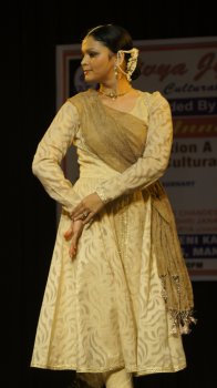 Precise and poetic - Shveta Arora e-mail: shwetananoop@gmail.com Pic: Anoop Arora December 7, 2013 Divya Jyoti Cultural Organization celebrated its 43rd annual function at Triveni Kala Sangam auditorium, New Delhi, on 24th November. Pt. Biswajit Roy Choudhary rendered a sarod recital, followed by a Kathak recital by Gauri Diwakar. Gauri Diwakar was trained under Sumita Chowdhary in Jamshedpur. She has been further groomed by Pt. Birju Maharaj and Jai Kishan Maharaj. Presently, she is a senior member of the dance repertory of the Drishtikon Dance Foundation headed by Aditi Mangaldas, from whom she is also receiving training. She has performed extensively in India and abroad. She was awarded the Ustad Bismillah Khan Yuva Puraskar for the year 2008. She is an ‘A’ grade artist of Doordarshan and an empanelled artist of the ICCR. The sarod recital by Pt. Biswajit Roy Choudhary left the audience swaying to the music. Gauri took to the stage starting with vilambit, going on to some neat nritta in teen taal. She presented a gat and went on to some tukras. She did an amad and paran and ended the piece with a bandish by Gulam Sabir Khan Ek chhabili naar, muskaat jaat niharati, karat solah shringar. Gauri enacted wearing all the ornaments – necklace, bangles, earrings and head ornament with perfect technique. The next composition was Sab ban than aayi shyam pyari re. Describing Radha’s beauty, the Bindadin thumri says, chandravadani, mrignayani odhe saari malti gunthaye kesh pyare ghunghrare, maang moti savari. Meeting Krishna, they are both locked in an embrace. The abhinaya was impressive.