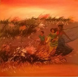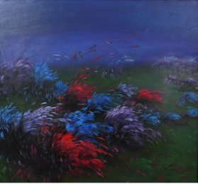 Prayag - Padma Jayaraj e-mail: padmajayaraj@gmail.com December 10, 2013 Prayag is a Sanskrit word for the confluence of rivers. To a Hindu mind, it connotes the sacred coming together of two rivers in the Himalayas forming the Ganga. Life-giving waters have flowed since aeons from it creating and sustaining life and culture in the plains below. The artist couple, Prayag Jha and her husband Jai Karan Chillar have created a wonderful artscape ever since their confluence half a century back. Their exhibition at Jahangir Art Gallery (26th November to 2nd December 2013) celebrating fifty years of life together as artists, is a testimony to a sacred confluence that creates art and culture. The display in the hall epitomizes years of artistic creativity that complements and supplements each other’s talent in the intimacy of five decades of togetherness. ![]() Prayag Jha ![]() J K Chillar On the walls, her paintings of windswept landscapes in myriad hues where shrubs in flowers dominate, mark the bounds of the happy terrain of their intimate life. The celebration of joy that the beauty of nature stirs up is the sum and substance of her paintings. Expressed in permutations and combinations of various shades and shapes, her paintings are inviting. As you move from one to the other they lead you from joy to exhilaration, changing your mood. A prayag of blossoms flourish and flow chastening and enriching your inner self. Here is an artist for whom nature is sacred. Yet, she lapses into godliness with pictures of Krishna, Siva and Kali. But these cult figures have human contours and are projected as part of the land, its background. Krishna is a tribal shepherd with his cowherd and Siva the nucleus of an austere terrain, while Kali is a bold girl. The few human figures that make their presence, also feel the force of the wind as the plants in flowers do. Oil or acrylic on canvas, some of them are orchestration of monochromes. Etching with different themes is another field of her artistic expression. She has done a visual rendering of Kalidasa’s Meghadooth, the epic creation of an ode to love. Etching is a unique art that demands patience and perseverance. Drawing with a sharp needle-pen on a zinc plate is the first step. After treating the carving with acid, a roller printer is used to transfer it on to paper. Trained in graphics, etching comes naturally to her. In fact, Prayag is the most accomplished artist honoured in India in the field of etchings. Meghadooth is the product of a Fellowship which she intends to publish soon. ![]() ![]() ![]() ![]() ![]() Paintings by Prayag Jha Encapsulated within these limits of love and divinity is another world, humane. Her husband’s artistic creations populate the terrain. Its deeper layers unravel happiness, success, faith, and the values that give meaning to human existence. J. K. Chillar’s work is curated as if the artist is casting a long lingering look back into his past. His sculptures, both abstract and figurative, cast in marble and bronze reveal his stature as a national artist. A post graduate in stone carving from MS University in Baroda, he has retained the passion for sculpture all along. His drawings on the wall, preludes to his carvings, surprise you with their flowing lines. The rhythm that shapes his sculptures has flown from these dancing lines. And there is an unusual softness that is strange in stone work. The abstract form of Ganesh, in marble, looks like a lump of butter. “He has given me everything...,” says the artist with a soft look on his face. “Many a time when there was nothing at home, I began carving Ganesh. Someone materialised giving an advance booking for the finished product.” “The marriage was our choice and we had to start from scratch,” his wife confided. ![]() Bronze sculpture by JK Chillar ![]() Line drawing by JK Chillar “Ganesh has given me everything I have.” You sense the ineffable love, not just devotion that has created the piece. Whenever he starts a project he begins with carving a small Ganesh. Looking back, after fifty years the struggle was worth it. Based in Bombay, they established themselves. He has remained a creative artist despite a few teaching assignments. And together they brought up a family. The statues of families that stand for happiness, success, unity etc., are organic pieces of men and women entangled by children. The Indian family tradition is the heart of the piece that invests it with emotion. But for a few human figures poised to look at life, we find groups of figurines. Women fill up his world as if he is aware of the golden ratio of human race. “My mother used to say that the woman is the most beautiful being, depending on how you look at her.” Bonding is the predominant thesis of these figurines, which is natural to women. It is a nobler feeling far removed from possessive love. Pointing to a life size group of young women cast in bronze, he recalled how he watched foreign maidens in a sportive mood, bathing in the sun on the shores of Goa. Apparently a human head, dispassionate and serene, looks like that of Shirdi Sai Baba from an angle, human and divine, one containing the other. While the drawings on the wall showcase bulls ready to fight, the statues of bulls that dot his locale are reminiscent of Nandi, the bull at rest. Rural rhythms resonate in his pastoral setting. They are memories of his boyhood home in Haryana, where he had tended land and looked after cows and bulls, whence he had known their affection and loved them in turn. Here, you sense the connect that binds the two artists, in this pastoral land, where every wind that blows, every shower that wets make meadows full of shrubs that burst into blossoms - prayag, the confluence of two streams that creates a sacred river. ![]()