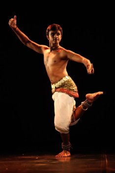 The primacy of male and female energies in the Dancing Male - Dr. Ketu H. Katrak e-mail: khkatrak@uci.edu Photos: Vivekanandan December 26, 2013 I can say everything is rhythm. Life is rhythm. Rhythm is God. - Pandit Birju Maharaj The rasikas on the final day (December 22, 2013) of PURUSH: The Global Dancing Male, were entranced by stupendous performances at Chennai’s Bharatiya Vidya Bhavan that evoked via movement, music, sound, lighting,words, and use of space several important provocations that this 5-day conclave of papers and performances had raised - what makes a man or a woman? How much of our gendered identities as man and woman are determined by external clothing and accouterments, and how much by our inner sensibilities? How do we inhabit our external physical male and female bodies and our unseen male and female energies that breathe through our muscles and bones? How do we explain the power and beauty of a male dancer in stree vesham transforming into a female, even as we enjoy male dancers performing tandava and lasya in equal balance? How do we take further our notions of sexuality by recognizing the significance of crossing boundaries of narrow definitions of sexual identities as heterosexual, homosexual, bisexual, and transgender? How do we redefine what is considered “normal” in society? How do we confront regressive legislations as the recent passage of 377 criminalizing homosexuality by India’s Supreme Court? How do we find the courage to openly respect and include the many personal and sexual choices in our human community? The evening’s magic began with Hari Krishnan’s choreography of Uma, danced in stree vesham by N. Srikanth with memorable subtlety, beauty and grace. The evening’s feast ended with the legendary Kathak maestro, Pandit Birju Maharaj performing Baithak Bhav in which he captivated spectators with his soulful singing and abhinaya, speaking with his eyes, voice, and torso. In between Uma and Baithak Bhav, two artists - Parshwanath S. Upadhye’s Bharatanatyam rendition of Purushaardham: the male half, and Kalakrishna’s Andhra Natyam portrayal of Navajanardhana Parijatam and a group dance of the warrior clans of the 11th century, in Perini Shivatandavam--were engaging and entertaining in different ways. Hari Krishnan’s choreography of Uma began strikingly as the audience watched six figures in black, one in a tasteful black sari and veil, both with shimmering gold design, making their way down the aisle towards the stage at Bharatiya Vidya Bhavan. First, they stepped in front of the curtain, then as the curtain lifted, the male dancer, N. Srikanth in stree vesham, took the center as the other six sat three on each side facing center stage in a unique arrangement characteristic of choreographer Krishnan’s creative use of space. Srikanth is an award-winning Bharatanatyam dancer specializing in performing female roles, and a trained actor who has performed in the Bhagvata Mela dance drama of Melattur, Tamilnadu. ![]() N. Srikanth ![]() Vaaraki, Hari Krishnan, Nagaraj Two singers, Subhiskha Rangarajan and Vaaraki Wijayaraj, amazing Carnatic vocalists from Canada (who sounded like they had just walked in from their homes in Mylapore or Adyar), faced one another as their soulful sounds reached the audience from two sides, along with flautist Nataraj on one side, and mridangam player Nagaraj on the other, with Krishnan in the center of one row as the energetic nattuvanar. An additional touch, characteristic of Krishnan’s thought-provocative choreography was to include Apsara Reddy, seated across from Krishnan on stage, a Chennai based transgender woman, now a successful TV host for the show Natpudan Apsara, to read the English translation of the song. The presentation had very original costume design by the talented Rex, evocative lighting design by Victor Paulraj, and research/translations by Davesh Soneji. Chennai rasikas were fortunate to enjoy this work Uma, commissioned originally in 2006 by the Can Asian International Dance Festival, premiering in Toronto as part of the Gender Transformations Festival that featured cross-gender dance traditions from around the world. Uma was created by Krishnan as a contemporary tribute to the tradition of stree vesham, female impersonation in South India. Krishnan’s many contemporary Bharatanatyam based choreographies, like Uma raises compelling questions about narrow and normative definitions of gender and sexuality, and celebrates multiplicity of identities away from limiting definitions of male and female roles, of sexuality, as indeed of other categories such as nation. In Uma, with his signature playful seriousness, Krishnan deconstructs many aspects of the javali. He plays creatively (as noted in the program) with both traditional and contemporary notions of woman, “as virgin, vamp, lover, mother, wife, mistress, celluloid goddess diva and temple Goddess Devi.” His choreography subtly dramatizes the many dimensions of “the diva and the Devi” rendered exquisitely, with technical rigor and subtle charm by the male dancer. The transformation was complete as Srikanth’s aura and expression convincingly conveyed a delicate yet strong, coy yet defiant female, playing with a long braid, holding the audience spellbound. This use of stree vesham raised questions about the external accouterments that “make” a man or woman recognized as such in society, and the inner energies of male and female that we all have and that can be accessed and performed. Stree vesham, where a man impersonates a woman is found in other performance traditions - for instance, in contemporary Asian American dramatist David Henry Hwang’s Tony award winning drama, M. Butterfly. Here, an elaborate disguise of a Chinese man as a woman named Song is maintained throughout until the dramatic conclusion. His male French lover, Gallimard’s acceptance of Song as his female mistress lies in Orientalist stereotypes of East