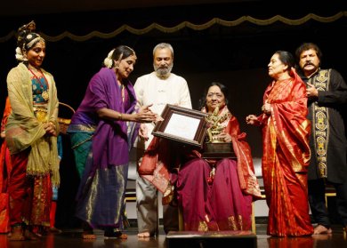 Natyashastra Award to Yamini Krishnamurthy - Ashish Mohan Khokar e-mail: khokar1960@gmail.com March 11, 2014 Does Saraswati incarnate need any more awards or titles? Especially when she has been blessed with the grace of Laskhmi and Durga too? Such were feelings and thoughts that came to mind when one saw the living legend Yamini Krishnamurthy being felicitated by Bangalore dancer-activist Vyjayanthi Kashi, the Kuchipudi talent and teacher of Bangalore. She undertook this mission appropriately on International Women's Day, March 8th at Bharatiya Vidya Bhavan's Khincha Hall, sponsored by the ICCR and Ministry of Culture’s grant ![]() Yamini Krishnamurthy gets Natyashastra award ![]() Suvarna Latha ![]() Kothapalli Padma ![]() Yamini Krishnamurthy The day began with the most engaging talk by a few worthies on stage, of whom Dr. Anuradha Jonnalagada was most coherent and comprehensive. An academician of note, especially of her Andhra heritage and history, which she also teaches at Hyderabad's University, she covered a neglected section of Early Women Dancers of Kuchipudi and very effectively wove tales on trials and travails of some dancers who never achieved national recognition or stature. Suvarna Latha and Kothapalli Padma took us down memory lane. That most Bangalore dancing boys and girls did not make time to attend the morning session showed their total apathy to dance education and heritage. Most of them run dance teaching factories and are far too busy being on FB than showing their faces at important learning platforms. It is a shame that all want to be seen in silks and stripes but care two hoots for history or their gurus, especially iconic names like Yamini, who come once in centuries. That a Brazilian theatre couple Dr. Ricardo and Priscilla Gnomes changed their departure by a day to Kochi, just to attend this important gathering of mind and matter, showed how deep and focused foreigners are when they pursue an art form. Yamini Krishnamurthy is a complete artiste. That means she knows sangeetam (music), sahitya (literature) and shastras (scriptural texts). Most dancers today know neither! The film shown on her, a tad too long, jumpy and unedited, was an eye opener for those who have never seen her dance on stage, in her prime. What a feast! Her dance has elegance, eloquence and educative content. Each hasta, each movement is clearly finished. There is no hurry-flurry that inflicts dancing today in most forms, not just Kuchipudi. Add brilliance of technique and a face that can emote just with eyes and you have a complete artiste. When Yamini K came on stage, there was no need for electricity because her mere presence on stage was electrifying. If ever there was a prima donna and prima ballerina rolled in one, it is her. Shovana Narayan, the smart Kathak dancer from Delhi enhanced the occasion, along with local talents Shama Krishna, Anuradha Vikranth, Rukmini Vijayakumar, etc. Prateeksha Kashi has humility that will go far in her dance career and this was evident when she was too shy to stand with all worthies when her DVD called The Magic of Kuchipudi was released by Yamini K on the occasion. Yamini's acceptance speech was simple and effective. “Dance is the only passion in my life,” she said and showcased why great artistes become great. They don’t multi-task but do one task fully and properly. She is a ratna of Bharat. Hope she gets the Bharat Ratna, as no dancer has got till date and she, more than anyone else, deserves it. While historically Yamini platformed and centre staged Kuchipudi nationally in the late fifties winning the form national recognition, she also is the reason why many learnt Orissi. It was her example that made Ritha Devi learn and seeing her, Indrani came to Orissi. Rest, as they say is history. And it can be said seeing her dance from 1960s to now that Yamini was not made for Bharatanatyam but that Bharatanatyam was made for Yamini. Bangalore was blessed to have her visit and share her art with those who partook of it. Her morning impromptu depiction of her signature item - Yaduvamsa...Ra Ra... reminded one of a man who got up from the hall and got on stage thinking she was calling out to him! Vyjayanthi Kashi stands congratulated for having put this rare event together. She was an active and effective Chairman of Karnataka Sangeet Natak Akademi until recently and returns to dance with rigour and vigour. Is she is another Yamini in the making, with her passion for dance? Ashish Mohan Khokar serves dance. He edits and publishes India’s only yearbook on dance - attendance - now in its 16th year and is custodian-curator of India’s largest dance materials - the Mohan Khokar Dance Collection. Details: attendance-india.com |