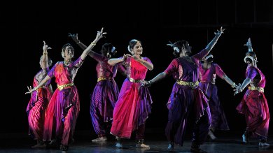 she is struck by Kamadeva.The final sequence, Shattered Glass, shows the fragility of friendship, coming under the cloud of doubt and recrimination. Shattered Glass shows two traditional padams, with the colours of pain, anger and sarcasm. When the sakhi returns after pleading with the hero, the heroine begins to doubt her intentions as to whether her friend has herself had an affair with him. She has doubts as to what transpired between them. The heroine imagines the sakhi, her hair being combed and perfumed, being beautified with a kasturi tilakam, and embraced by the hero. The heroine takes out her frustration on the chores in the house, and goes about washing clothes while crying in anger. In the second padam, the sakhi, in jealousy, gossips about the wealth of the heroine, her palatial house, ornaments, guards and good fortune, and says that once upon a time, she would beg for them. But once they get together, they resolve their differences, for old times’ sake. They make good on their slander for each other, go out into the vines to pick fruits and eat them together. The concept, performance and choreography were by Geeta Chandran. Excellent vocals by Sudha Raghuraman, natuvangam by Guru S Shanker, mridangam by MV Chandrashekar, flute by G Raghuraman and costumes by Sandhya Raman enhanced the presentation. The lighting was designed by Deepa Dharmadhikari and rhythm inputs were by Lalgudi Sriganesh. Shveta Arora is a blogger based in Delhi. She writes about cultural events in the capital. |