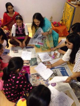 Inauguration of SPIC MACAY - Harrow Chapter April 28, 2014 The SPIC MACAY - Harrow Chapter was inaugurated in Kalasagara UK dance studio in Pinner, Harrow, on April 27, 2014. It was attended by a band of very enthusiastic students and their parents. The function started with the lighting of the traditional lamp by Usha Raghavan, director of Kalasagara UK. It was then followed by a video presentation on SPIC MACAY by Lakshmi Kaul, the convenor. Then, Ms. Kaul accompanied by Sandeep Prakash gave a very inspiring speech about the activities of SM in London that was received by the participants with rapt attention. ![]() Preeti Mahenthran, a dance student, sang a slokam and a kirtanam “Pahi Pahi” in Hamsadwani ragam and adi talam. Kripali Patel and Karishma Bajaria came well prepared to teach Rangoli drawing. All young students joined them enthusiastically. Assisted by seniors, everyone tried their hand in drawing rangoli on paper designs cutouts. Colourful designs emerged within 15 minutes and all young participants were very happy to have learnt something they could show their friends.