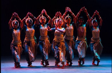 That Krishna is the Lord of the Universe and everything moves at his wish was enacted through consorted dance movements by a group of dancers weaving fine symmetrical patterns to portray the Dasavatar, the Vishwaroopa darshana, and a striking lifting of Giri-Govardhana, while Krishna and Arjuna remained at the forefront. A succession of lovely choreographic endeavour indeed! Rajashri Praharaj, a strong, senior dancer was convincing as Krishna. She was able to impart the variations of her smiles according to the demand of the situation with dignified grace to add interpretative proportions to her character. Manosmita Panda, also a fine dancer, concentrated more on her dancing but expressed her helplessness with ease. After the Geetopadesham, war is declared when Krishna blows the Panchjanya conch. This is a lovely scene to relish, while the dancers remain in still points. The choreography that dominated the whole production was the spectacular entry of Arjuna in the horse drawn chariot, Krishna being the charioteer. The uniform movements of the dancers as horses and as wheels rolling into the stage, was an unforgettable imagery of aesthetics and competence. It requires a high calibre as a teacher and great imagination to choreograph such a well designed phrasing of steps and get them executed with clockwork precision. Guru Ratikant must be lauded for this striking composition. Light by Debiprasad Mishra played a major role in enhancing the appeal especially at the entry of the chariot and the bloodshed war field. Another dazzling formation was the rise and fall of the dancers with quivering hands while sitting in a circle depicting “Prajwalita Gyanamoya Pradipa.” With the war declared, the production ends. A recital of Gita Mahaatmayam is added at the end to offer a sense of completeness to the performance. The dancers Preetisha Mohapatra, Arpita Swain, Aishwariya Singhdev, Sipra Swain, Pragna Paramita Das and Riyanka Chakravarty have solid training and with a strong sense of teamwork and harmony made the captivating production worthwhile. The costumes of peacock blue (colour for Krishna) and white depicting peace or wisdom are simple yet attractive. Ratikant’s choreography has incorporated some contemporary and classical ballet movements blended seamlessly with the classical Odissi. The music is by Pt Bhubaneswar Mishra, Pt Raghunath Panigrahi and Satyabrata Katha who also lends his voice. Rupak Kumar Paridha has also lent his voice for the last song. The script is by Pt Nityananda Mishra. Renowned academician and scholar professor Dr. Bharati Roy was highly impressed by the presentation and mentioned that she had never heard Gita being sung. The thunderous applause and standing ovation was very well deserved. Dr. Nita Vidyarthi is a critic of performing arts, specialising in dance, dance theatre and expressions and is a regular contributor to The Hindu, and the Statesman Kolkata in dance, vocal music and theatre. She is trained in Kathak, Bharatanatyam and Manipuri as well as vocal, semi-classical music and Rabindra Sangeet. A Science communicator, Ph.D. in Polymer Science, Commonwealth Scholar and a retired Professor of Chemistry, Nita devotes most of her time to dance and theatre writing. |