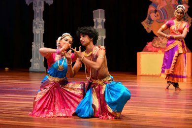 Melbourne Bharata Kalanjali calling - Mangalam Vasan e-mail: mangalamvasan@y7mail.com November 12, 2014 Melbourne’s Rowville Secondary Performing Arts Theatre saw the return of the natya couple from India. They came to celebrate the fifteenth anniversary of the little Bharata Kalanjali being one of the branches of the banyan tree Bharata Kalanjali Chennai. Rathika Mahadeva was a student of the Dhananjayans in the nineties performing and displaying her talent as Draupadi and other roles. She started her own Bharatanatyam school in Melbourne in 1999 and the school has now grown to eighty students showing her passion in propagating the natya tradition. ![]() VP Dhananjayan, Rathika Mahadeva, Shanta Dhananjayan The fifteenth year celebration was kicked off with the arrival of the Dhananjayans from Chennai. The 13th arangetram conducted by Rathika Mahadeva, that of Narmatha Dushyanthan, was successfully staged with the paramagurus as chief guests. It was followed by a lecture demonstration the next day by the Dhananjayans at the Clayton Town Hall. Shanta Dhananjayan sang with Ramesh Babu on the mridangam for Dhananjayan to demonstrate and together the three of them thoroughly entertained the Melbourne rasikas. After earnestly urging the audience to drop ‘India’ and revert to the name ‘Bharath,’ Dhananjayan launched into demonstrating navarasas in various contexts to pieces such as “Aadinaye kanna.” He showed us the feminine and masculine rendering of the rasas, a display that confirmed him as a bhava raja. He further took the audience into the topic of male dancers and shared tips to avoid effeminate dancing. Having seen the Dhananjayan choreographed “Aadinaye Kanna” umpteen times, one would expect, a ‘not again’ reaction. But lo behold, Dhananjayan danced his own sanchari bhavas as Shanta sang Ambujam Krishna’s “eedilaa azhagiyar gopiyar unaiththedi naadivanthida nadhikkarai nilavoliyil” and the audience were spellbound as though it was a revelation what the anupallavi could lend itself to, as never known before. ![]() VP Dhananjayan ![]() Shanta Dhananjayan The maestro stressed on the importance of hasta mudras as he has always maintained that, similar to apaswara in music, in dance if one does not hold one’s body postures and hand mudras properly, it is avalakshana. Rathika’s students were caught unawares being called on stage to demonstrate the mudras. The seniors coped fairly well and got away without getting into trouble with the gurus. In the front row, he spotted Shanthi Rajendran who is the director of the big Nrithakshetra dance school in Melbourne and remembering yesteryears teaching in Kalakshetra, laughingly recalled the days when she used to be scared of him. Being captivated by the grand guru’s endearing smile on stage, one wondered whether he could have been such a scary teacher! Quizzed by the audience on his opinion of fusion and Bollywood, Dhananjayan responded with, “Fusion is ok as long as it is not confusion.” As to Bollywood, Bharata Kalanjali students certainly would not be getting into the good books of the guru with Bollywood. After a week of workshops, the annual concert was held on the 12th of October. Rathika Mahadeva has been staging avant-garde dance dramas in the past years such as Ramayanam and global warming, Mahabharatam and boat people, and gambling and Annapurna. This year she reverted to the traditional margam and called it ‘Parampara’ in honour of her gurus and the rich dance lineage starting from Rukmini Devi Arundale. The supporting ensemble consisted of Rathika Mahadeva on nattuvangam, Uthra Vijeyaraghavan on vocal, Narmatha Ravichandhira on violin and Ramesh Babu on mridangam. The stage was embellished by the Narthana Vinayagar drawn by Melbourne’s own artist Srinanthakumar.