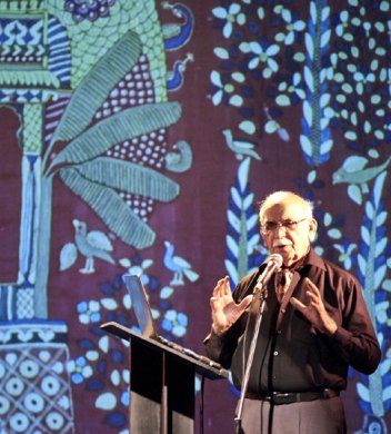 Natya Darshan 2014: A sum up - Devina Dutt e-mail: devina@firsteditionarts.com Photos: Lokhii February 3, 2015 The idea of using the blossoming lotus as a metaphor for the chain of creative processes that are triggered when a new artistic work is being made was an inspired one. Dr. B.N. Goswamy whose deep and unaffected scholarship spans Urdu, Persian, Sanskrit poetry and art, chose a poem in Urdu by the Pakistani poet Ahmad Nadeem Kazmito to expand that idea. Ilfaz ki haisiyat phulon ki si hotee hai Jo shair ki kuvat e takhleek ke mutabik Apne pakhriyon ko kholte hain ya samethe hain Words are like delicate flowers Gauging a poet’s intentions and capabilities Their petals open up or gather close together. As the principal architect of this conference, Malavika Sarukkai’s own dance presentation ‘Vamatara: To the Light’ on the first evening reflected her curatorial concerns and intentions in a robust and direct manner. Linking the blossoming, gradually flowering lotus to the creative process was an opportunity then to understand how a performing artiste is shaped by the multiple ideas and influences that come to bear during the making of a work. It was also a time to retrace the roots of the process by which music and poetry are a part of the improvisations that define the Indian classical dancer. ![]() Dr. BN Goswamy ![]() Malavika Sarukkai All of this was suggested by Dr. Goswamy, a constant intellectual and aesthetic presence at the conference. On the very first day, he took us to the Vaishnav town of Nathadwara and its splendid pichwais in a lecture on art and the creative process. Pointing to a visual of a cave, he referred to it as the cave of experience, adding that, “Every time you enter that cave, something will happen…” Once again guided by Dr. Goswamy’s inner eye, perhaps the empty space left for Krishna in the pichwais too has a purpose. The fact that the painters of pichwais painted him ambiguously, sometimes as a shape barely seen through the stream of golden yellow leaves falling off a tree, tells us that when we are experiencing art, meaning reveals itself gradually and in flashes. The empty spaces in the pichwais are also a reminder that audience response is the final turn of the key for the creative arc to be complete. I think we saw a great deal of that wealth of creative processes in the two sessions with Bharatnatyam dancers Shyamla Mohanraj and Aniruddha Knight. Not surprisingly there was a direct connection between them and the great dancer T. Balasaraswati; the former is a long standing student and the latter is her grandson. Both are steeped in all that they have learnt from the great dancer and musician and their lec-dem sessions on ‘Abhinaya’ and the ‘Musicality of Dance’ respectively, were riveting. ![]()