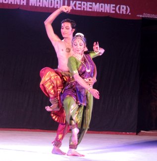 Keremane Shambhu Hegde Rashtriya Natyotsava 6 - Sudha Sridhar e-mail: sudhasridhar@hotmail.com March 12, 2015 The sixth edition of the annual Keremane Shambhu Hegde Rashtriya Natyotsava (KSHRN), organized by the Idagunji Mela, Keremane, Karnataka had many firsts to its credit. This edition saw probably for the first time all the three streams of Yakshagana, namely the Karnataka Yakshagana (Badagutittu and Tenkutittu), Kuchipudi Yakshaganam and Melattur Bhagavathamela come together and perform in the same festival and also being part of a unique seminar on the traditions of all the three Yakshaganas by the artistes from the respective communities. The five day festival (6th to 10th February, 2015) with SNA, Ministry of Culture, New Delhi and Department of Kannada and Culture, Bengaluru as main sponsors was both lively and exhilarating in its content and presentation keeping the audience enthralled right through all the sessions. February 6 The inaugural session though being a Friday evening saw the amphitheatre with full audience while the director of the Idagunji Mela, Shivananda Hegde explained in detail as to how the sixth edition is dedicated to late Kathak Guru Dr. Maya Rao as a mark of respect and gratitude for her contribution to the art world in general and to the Idagunji Mela in particular. The inaugural session also saw the presentation of the ‘Keremane Shivarama Hegde Award’ to Nageswara Rao (Hyderabad) of Sri Venkateswara Natya Mandali, affectionately known as ‘Surabhi Babji.’ Babji is no stranger to Gunavante; his back to back performances in the fifth edition of the KSHRN 2014 was very well received. Surabhi is a unique troupe having a history of over 125 years while Sri Venkateswara Natya Mandali is a registered organization since 1937. A very deserving artist and its group to be conferred with the award for upholding the community based dance theatre tradition alive against all odds by a single family under the stewardship of Babji. The session saw a book release on the life of Late Keremane Gajanana Hegde titled ‘Yelladu bandaru Menaka’ authored by M.A. Hegde and Shivananda Hegde. The festival also saw unveiling of his statue on the last day of the festival as a mark of honour for his talent and his penchant for performing female roles metaphorically called as “Menaka who had descended upon on earth.” ![]() Leela Samson & Sai Santosh The cultural program of the festival was kick started by a wonderful Bharatanatyam performance by Leela Samson and Spanda Dance Company, Chennai. The group started with a Swathi Tirunal composition “Shankara Srigiri” in Mohana and Hamsadhwani raga set to adi tala, which was followed by a Muthuswamy Dikshithar composition “Ganga mampahi” in Jhinjoti raga set to kanda and eka tala. Both the compositions were very brisk, captivating and precise. The coordination, geometrical postures were in sync with the music. The group went on to perform a Purandara Dasa composition set to music by Rajakumar Bharathi with three ragas - Charukesi, Hamsadhwani and Bhimpalas set to ekta tala. The javali “Ye ra” by Dharmapuri Subarayar in Khamas raga and set to adi tala saw Leela Samson on centre stage essaying with poise and ease. The last item, a trademark tillana medley of Lalgudi G Jayaraman was in ragamalika and talamalika. The choreography skills of Leela Samson came clearly to the fore, encompassing theatre aspects, dramatization and a touch of contemporary style in presenting the items, without compromising on presenting the dance in its best pure form. ![]() Purulia Chhau The concluding cultural program of the first day saw Purulia Chhau performance by Dileep Mahato’s troupe, West Bengal. They started with a Ganapathi pradhana and continued with Shumbha Nishumbha where the goddess Durgadevi kills the demons to save the earthlings. This was followed by the depiction of the episodes from the Ramayana - Sita Swayamvaram - and Mahabharata - Abhimanyu’s Chakra vyuham. The very colorful attire, props and the all important masks marked the different characters, who performed somersaults, turns, with remarkable dexterity and formation with only music accompaniment of shenai and drum and no dialogues or lyrics. The dramatization with only angika and aharya abhinaya for story narration with lot of emotions showed how challenging and profound is the Purulia Chhau when it comes to effectively communicate with the audience. February 7 The morning session commenced on the second day with a seminar ‘Apoorva Poorvasmarane,’ a session where different speakers paid homage to the departed artists during the year 2014 - Dr. Maya Rao, Dr. U R Ananthamurti, Mudkani Narayan Hegde and Haradi Ram Ganiga. This was followed by a Koodiyattam performance by Kalamandalam Sangeet Chakyar, Kerala. The enacting of the story with fervent drum beats and emoting of the artist in a very measured way made an interesting study for the participants who were mostly exposed to the art form for the first time. It was good to see the youngsters stay tuned to the performance till the end with rapt attention. ![]() Shri Krishna Jananam and Kamsa Vadham