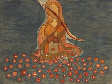 All that comes to an average reader’s mind is the ‘Sati’ image of a blindfolded woman as Gandhari. In the enormity of the intensity of her sensitive being within and the value of nonverbal suggestion an art work makes, Gandhari is outstanding among Ruby’s character portrayals. The dark red strip of the blindfold across her visage and the face of the invisible being (made visible) inclined to her left and the navel, to which the umbilical cord of each child was connected, give an idea of her tearing emotions. She is made of such stuff that her sensitivity encompasses not only her husband’s pain and the death of her hundred sons, but also the loss of values in the Draupadi episode. Theatre needs contextual narrative details to bring home to the viewer the intensity of the feeling depicted, and music and lights generally to enhance its effect. The circles with the suggestion of life within get turned into brightly lit tiny bulbs (Lights: Abhishek) in the performance and, tuned to the somber strains on the violin, Gandhari’s indescribable pain gets subtly conveyed in slow motion. Under the blindfold, Ishira as Gandhari recalls to mind the momentous unfortunate circumstances that gave an unalterable turn to the fate of her family and clan - and the people of this land for all the time to come. ![]() Krishna
