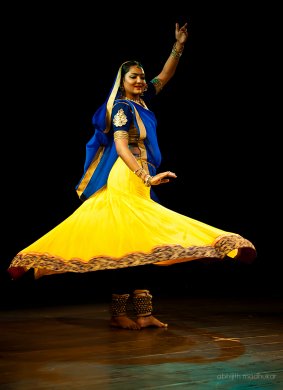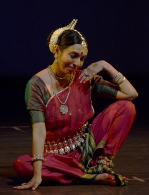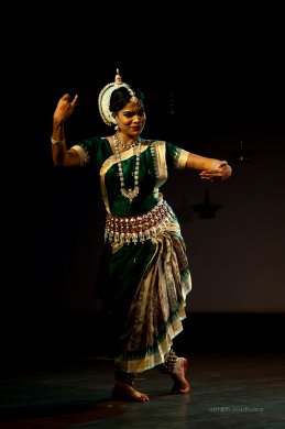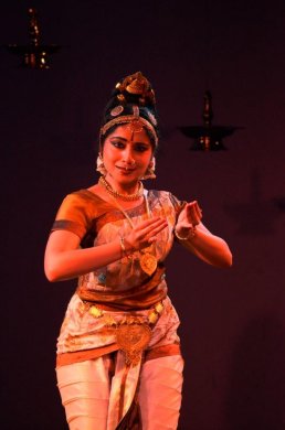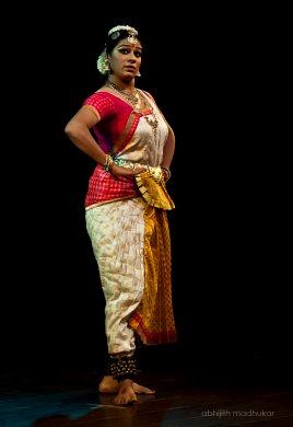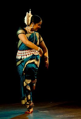 Gita Govinda in four dance styles through Kavyarasa - Manasi Pandya Raghunandan e-mail: manasi.raghunandan@gmail.com Photos: Abhijit Madhukar & Hemanth Shriyan May 29, 2015 Bengaluru is surely emerging as a city of classical dance festivals in plenitude and amongst the variety that can be seen, Odissi dancer Madhulita Mohapatra, director of Nrityantar, is also putting in loads of efforts to bring out themed festivals and present quality artists. Kavyarasa staged on May 17, 2015 at Seva Sadan, featured soloists presenting ashtapadis from Gita Govinda of Jayadeva which showcased eight dancers from Bangalore including Anuradha Vikranth (prabandha 3, Bharatanatyam), Manasa Joshi (prabandha 4, Kathak), Shama Krishna (prabandha 5, Kuchipudi), Meghana Das (prabandha 6, Odissi), Prateeksha Kashi (prabandha 17, Kuchipudi), Madhulita Mohapatra (prabandha 18, Odissi), Sathyanarayana Raju (prabandha19, Bharatanatyam), Sharmila Mukerjee (prabandha 24, Odissi). It was good to see that the stage was also aesthetically set, with beautiful white scented flowers highlighting the border of the stage. Further, hanging from the ceiling towards the backdrop on the stage were six lamps and a centred single bell that created a serene ambience. Most appealing was the two feet high Krishna -Radha idol on the left side of the stage which added an extra point to the decor. It was delightful to see many rasikas come to witness the program but unfortunately it got too crowded and several fumbled towards the tiered seats in despair. Despite this, the audience appreciated the presentation but the hosts should look into planning with a better alternative next time. The evening opened with the performance of the 3rd ashtapadi “Lalitha Lavanga”, “Viharati Haririha” presented by Anuradha Vikranth. She wore a smiling face from the time of her entry and was involved with the meaning of the lyrics in her every move. She did justice in showcasing how it is springtime, and during “Sarasa Vasanta nṛtyati yuvati” brought out what was expected from this piece. Her footwork was neat and strong and added to the mukhajaabhinaya. From Natya Shastra, took Samotsarita Mattalli of the sixteen bhumi charis towards the zenith of the ashtapadi. She beautifully took a tinge of the handuras imagining Krishna towards the climax while exiting. Using good body language and apt gestures in the frame of Bharatanatyam, Anuradha artistically portrayed on how Radha, beautiful and delicate, looked like a vasanti flower in Spring season as she pined in love for her Krishna. Depicting such a theme, the artist could have chosen a more appropriate colour of the costume to do further justice to the aharya abhinaya that goes with the meaning and lyrics of the presentation, especially while portraying sringara rasa, having some shades of vipralambha. This presentation was set to raga Vasant and talamalika. ![]() Anuradha Vikrant ![]() Manasa Joshi Next, an agile Manasa Joshi dressed in a yellow with blue of the Kathak (Jaipur gharana) costume embarked upon the stage. With the lilting voice of Ganesh Desai and the befitting choreography by Nandini Mehta, Manasa presented “Chandana charchita”, “hariri ha mughdha”. She was geared up right from the beginning to use the stage well. In the sanchari bhava, she did justice to the typical Kathak grammar also charmingly showcasing the matki, ghunghat and the pichkaari. Her hastak was well defined and she swiftly moved to the doon from karatala tala. However, she could have done a little more justice to the raas. This presentation was closely structured like a typical gat nikas and also had few shades of lari and tihai. Towards the climax she also used a (16 spins) chakradhar toda. The third soloist was Shama Krishna with “sanchara dadhara”, “raase harimiha” an extraordinary choreography by Guru Vempati Chinna Satyam and trained under the tutelage of Veena Murthy Vijay. She projected a pragalbha and did justice to Radha in vasakasajjika lilting with the shringara. She used a dolapada from akasi chari after sanchari when the sthayee later returns. She beautifully projected the essence of this ashtapadi in the sanchari. The artist was seen doing lip sync at several places which could have been avoided for the better. ![]() Shama Krishna ![]() Meghana Das Next was “Sakhi he”, “nibhṛta-nikunja” in Odissi by Meghana Das. With a posture in the centre of the stage, trying to follow the lilting music of the flute, she commenced her piece. With neat chaukas and tribhangas and clean postures as well as picturesque hastabhinaya, it was evident that the artist has received good training from her teachers and seems to be a promising soloist of the future. However, for an intense piece like “Sakhi he”, it is very important to feel the abhinaya from the beginning and get more involved. She tried representing the vasaksajja nayika through a madhya. She also used utspandita from the bhumi chari of Natya Sastra over a “Sakhi he.” This piece was choreographed by Sahana Dash and the music was composed by Vinod Panda. Prateeksha Kashi has excellent understanding of abhinaya and controlled body language as well as grace. She brought the poetry to life and sketched the character of Radha in vipralabdha and then khandita nayika. She used her upangas carefully and brought out the shades of anger and ambivalence. She could also project from vikshipta to mudha to niruddha towards the end. She gave an apt portrayal of the storyline of “Yahi Madhava yahi Kesava”, “Rajani janita” under the frame of pragalbha. This choreography was taught to her by her mother/guru Vyjayanthi Kashi. ![]() Prateeksha Kashi ![]() Madhulita Mohapatra Bringing the charm of Odissi, came Madhulita Mohapatra, draped in dark green with cream traditional Odissi costume with a left wing reverse entry, brilliantly choreographed by Aruna Mohanty. In “Madhave ma kuru manini manamaye”, Radha, the kalahantarita, is persuad