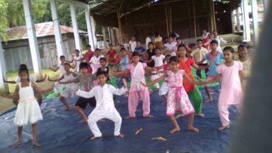 Sattriya and Khol playing workshop at Tezpur - Jintu Sarma e-mail: jsarma88@gmail.com August 6, 2015 Saptaswa…the rays of performing art is a socio-cultural organization of Tezpur, Assam, a city of cultural repute, the land of Jyotiprasad Agarwala, Bishnu Prashad Rabha and Phani Sarma. The founder of the organization is Dr. Pratibha Sharma, a Sattriya artiste trained under eminent dancing genius Guru Jatin Goswami. For the better growth and expansion of Sattriya and other Indian classical dances, Saptaswa is playing a key role in Assam. Every year, Saptaswa celebrates World Dance Day with its national level program called Nrityakalpa. Though Indian classical dance is famous globally, many children are deprived of the facility to learn the classical dances despite their immense talent and interest. Keeping this in mind, Saptaswa planned to organize a dance workshop in the rural areas of Tezpur. In collaboration with Tezpur Anchalik Sanaskritik Samaj and the direction of local MLA Rajen Borthakur, Saptaswa hosted a ten days Sattriya workshop along with a Khol playing workshop in Sonitpur district. This is the first time a classical dance workshop of this kind was held in Tezpur. Due to the number of participants the workshop was held in five different places of Sonitpur district - Ketekibari, Dekargaon, Milanpur Saikia Suburi and Beseria. The Khol playing workshop was placed in Komarchuburi Namghar premises. The main objective of the workshop was to provide a platform for budding talent from rural areas. The total number of participants was 230, which was beyond expectations