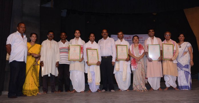 The workshop was held from 11th July to 21st July. The inaugural program was held at Sri Sri Sankar Mandir of Majgaon of Tezpur. The meeting was presided by most respected satradhikar of Sri Sri Nikamul Satra, Sri Punyabrat Goswami and the chief guest was Narayan Mahanta, DCF, Sonitpur. A special act of Mati Akhora was presented by Dibyajyoti Deka, a student of Rupkonwar Sangeet Mahavidyalaya and eye catching Sattriya was presented by Meghmallika Borah and Swati Bayan, students of Saptaswa. Also, the group of Pinkumoni presented an interesting item called Dihanaam, a special folk song of Assam. To conduct the workshop, special resource persons were invited - Sailen Saikia, retired teacher of Luit Konwar Rudra Barua State College of Music, who is trying to establish Sattriya on an international level along with his better half Sabita Saikia and their organisation Jugalbandi; Prabhakar Goswami, reputed Sattriya exponent of Assam; Nilamani Bora from Jorhat; Atul Bhuyan of Aauniati Satra; Krishna Jadumano Saikia from North Kamalabari Satra. Every day, the morning session took place from 9am to 2pm and from 5.30pm the Khol playing training was conducted. Girls also participated in the Khol playing training which is a positive sign for the growth of the art. The closing ceremony was held on 21st July in the premises of Komarchuburi Namghar of Tezpur where the resources persons were also felicitated. The program started with a Borgeet sung by Ankurmoni Sarma. After 10 days of workshop training, the participants presented an enthusiastic and impressive one act of Gayan-Bayan. At the same time, eminent Guru Sailen Saikia regrets that “in the present days there are some teachers who are misguiding our growing generation.” MLA Rajen Borthekur added that, “Nowadays our children are more interested in modern songs and dances but only our own culture and ethnicity will live on and will strengthen our society.” ![]() Felicitation From this workshop, out of 230 trainees, 16 candidates will be selected for special training under Guru Jatin Goswami. After that, they will be further trained in Sattriya dance at Majuli. |