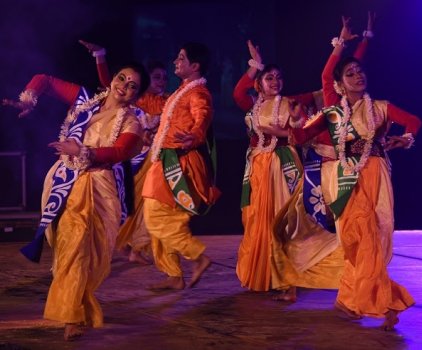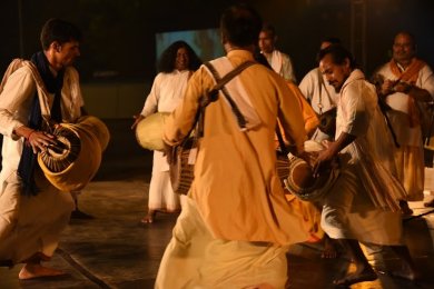 Nritya jyoti - Shveta Arora e-mail: shwetananoop@gmail.com Pics: Anoop Arora December 15, 2015 On the occasion of the birth centenary celebrations of His Holiness Swami Chinmayananda, the Chinmaya Jyoti Utsav was held at the Vivekananda Mela Grounds in CR Park in Delhi on the 3rd of November. On this occasion, a vahini (bus) carrying the padukas, vastram and jyoti travelled across different states. In Delhi, it was received at Chinmaya Ranjan by Swamini Gurupriyananda and Swami Durgeshananda. That evening, a grand stage in the grounds was decorated with banana tree trunks. The trunk was cut into shape and made into panels for the style used in Vrindavan. On the pedestal that seated the padukas, Lord Radha Vallabhji presided. O.S. Arun started things off with a guru vandana. Then, the puja of Swamiji’s paduka commenced. One hundred and eight flowers were offered by Swami Gurupriyananda and Swami Durgeshananda amidst the chanting of shlokas. The act of each flower being touched to the heart and then offered to the padukas evoked great reverence. The video showing the arrival of the vahini and Swamiji alighting from it, his feet and padukas visible in a symbolic way left the audience steeped in reverence. Children from three schools chanted the 15th chapter of the Bhagavad Gita. At a time when the older generation is crying hoarse that the next generation is not being introduced to our culture, here were children reciting the Gita with great ease. Amongst the speakers, Swami Nikhilananda spoke about the message of the Bhagavad Gita, emphasizing on seva (service), love, wisdom and dhyana (meditation). A few disciples spoke about Swamiji’s influence on their lives, and finally, it was Swami Mitrananda who spoke about his encounters with Swami Chinmayananda and his disciples. Very touching were his words, “It’s very lonely up there.” ![]() Children reciting Bhagavad Gita ![]() Sankirtan mandali from Vrindavan Rajiv and Geeta Chandran conceived the entire cultural program. The sankirtan group of Gaudiya sampraday Vaishnavas chanted the mahamantra with mridangam and manjira. Their dance with percussion created spiritual fervour. ![]() Tanya Laskar and group The dancers of Tanya Laskar’s group presented Rabindra Natyam based on Rabindra Sangeet. The performance was a homage to both Rabindranath Tagore and Swamiji. The composition “Bishwa bina robe” is based on the Shankho school of thought and describes srishti, sthiti and vinaash. The lilting music and dance were impressive. The painted faces of the dancers and their painted dupattas were artistic and perfectly represented Bengali culture. The maharaas as described in the Bhagavata Purana says that it is only when ‘jeev’ or the human surrenders his pride at the feet of the lord does union take place, and then there is the dance of the atma and the paramatma. Befittingly, the evening culminated with the presentation of maharaas in different styles of dance. It was the month of Karthik and an open air stage to dance on in the sacred presence of Thakurji and Swamiji’s padukas provided just the right ambience to perform the maharaas. ![]() Dhanarani Devi and group Dhanarani Devi and her group performed in the Manipuri style. Radha and Krishna meet in the nikunj on a vasant purnima. They dance together, play Holi with colours and pichkaris and finally, the aarti is done by the sakhis. The dancers were graceful, with good footwork. Geeta Chandran and her Natya Vriksha Dance Company performed raas in Bharatanatyam. The dance was based on Rasikvani by Hitaharivanshji - “Khelat raas rasik braj mandal.” The composition describes how Krishna, Radha and the gopis dance in the full moon night. They are so engrossed in dance that they intertwine like shyam and kanchan beli (black and gold coloured creepers). The two are lost to the world while dancing. The costumes were well designed. The evocative abhinaya by Geeta and the nritta and formations by the group were immaculate. The last formation, where Krishna plays the flute while the cows and sakhis look on, was impressive. Talking about the choreography, Geeta said, “An open-air environment requires a different kind of work, so we had to redo quite a bit of it. And since we have been associated with the mission for so long, the jyoti coming was an added excitement. Each time I turned, I could see Thakurji there and this was a unique experience. We have two new dancers in the group, so it is always a work in progress - re-visualising and re-choreographing with newer challenges.” ![]() Geeta Chandran’s group ![]() Shovana Narayan and group While the previous performance was beautiful for its use of expressions, formations and movements up and down the stage, the next group Asavari, led by Shovana Narayan was impressive for its speed and tempo. The group danced to the first few lines of Nandakumarashtakam, depicting the lifting of Govardhan by Krishna on his little finger. Shovana Narayan performed abhinaya to “Baso mere nainan mein Nand Lal,” a Meera bhajan. The group finished on a few lines from a sufi qawwali - “Tere ishq nachaya karke thaiya thaiya” (I dance to the tune of your love), with spins by the group at great speed. Shveta Arora is a blogger based in Delhi. She writes about cultural events in the capital. |