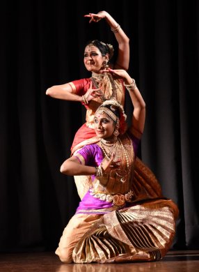 The performance began with a pushpanjali. This was followed by a kautuvam composed in khanda nadai by Arupa Lahiri and Dr. Vasudevan Iyengar. With graceful abhinaya, Arupa as Parvati explored a traditional padam - an unmarried Parvati dreams of her lord. She sees Shiva walking in a procession with matted hair, with the Ganga and the half moon on his head, but she also reminisces about the story of her previous incarnation as Sati, and how she had immolated herself in the yagya of King Daksha. Then she goes on to describe to her sakhis how she has been waiting for him for all these years, wondering if he will accept her now. Lakshmi was at her best as she performed a Thyagaraja krithi, describing the swayamvar of Rama and Sita. King Janaka watches as his little daughter lifts the Shiv Dhanush. Lakshmi depicted Sita tying the toran, making a rangoli - ‘dharani sukumari janakarajanandini tribhuvan sundari’. The little Sita is playing with a ball which falls behind Shiva’s bow. Sita moves the bow with ease and picks her ball up. A stunned Janaka pledges that he will give his daughter in marriage only to someone who can break the Shiv Dhanush. He is surprised and in awe. The kings fail to lift the Shiv Dhanush when they come for the swayamvar. And then “Shri Raghav Raghukul Ratnadeep Rama” lifting the bow and breaking it. In Rama-Sita kalyanam, the knot is tied and the bride and the groom circumvent the sacred fire. Finally, Hari and Hara have their wives turning green with envy. In the devaranama by saint poet Purandaradasa, goddesses Parvati and Lakshmi argue with each other about the superiority of their respective husbands. Parvati, criticizing the dashavataram of Lord Vishnu, makes fun of him being a fish and a turtle, which live in water. Lakshmi counteracts by saying that Shiva lives in the funeral grounds. Vishnu as a boar lives in the muck, whereas Shiva applies ashes on his body. Vishnu is dark-skinned, and Shiva has matted locks. Vishnu is man-lion and a dwarf. Shiva has trinetra (three eyes). Vishnu is helped by monkeys in the Ramavatar, whereas Shiva is accompanied by bhoot-preta and snakes. Vishnu reclines on the snake. The Kalki avatar rides on the horse, whereas Shiva has a bull as his vehicle. The humourous argument draws to a close when Lakshmi and Parvati both realize that Hari and Hara are the same. Arupa and Lakshmi did justice to the piece. Their abhinaya, postures and jestful expressions were immaculate. The final thillana in Revathi raga was a composition of Maharajapuram Santhanam. It praises the devi as matangi, mahishasuramadini, mookambika, parashakti. The agility of the two young dancers was evident. The ensemble consisted of Jayarama Rao (nattuvangam for Kuchipudi), Shakuntala Prabhat (nattuvangam for Bharatanatyam), Satish Venkatesh (vocals), Keshavan (mridangam), Rajat Prasanna (flute), with Meeta and Govind on the lights. Shveta Arora is a blogger based in Delhi. She writes about cultural events in the capital. |