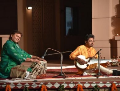 Excellent Kathak at Remembering Pt Ravi Shankar festival - Shveta Arora e-mail: shwetananoop@gmail.com Pics: Anoop Arora March 12, 2016 A festival of Indian classical music and dance was held at the Ravi Shankar Centre in Delhi to celebrate the 96th birth anniversary of Panditji, just like every year. On the second day, the 5th of February, Abhishek Lahiri gave a sarod recital, and Abhimanyu and Vidha Lal performed Kathak. The centre looked like a shrine, a temple of music. As you entered the place, you felt the ambience and vibrations. On one side is a statue of Pt Ravi Shankar with a sitar in his hands. Below is written his title, ‘Nada Brahman, Vishwa Ratna.’ Inside, in the amphitheatre, are lattices and stone statues. The entire place had flower rangolis and diyas flickering - very beautiful indeed. However, what I most distinctly remember about the evening was that it was extremely cold! The dancers were sitting and dancing on a very cold stone floor, with the wintry Delhi sky starless and grey-black as usual. Abhishek Lahiri, the son and disciple of the sarod maestro Pandit Alok Lahiri, gave a sarod recital with Akram Khan on the tabla. They played a composition in raag Yaman, aalap and jorjhala, a bandish in roopak teen taal and lastly, in Mishra Pilu. It is amazing how, using just your fingers, you can make an instrument play so many sounds that it sounds complete. Akram Khan was excellent on the tabla as well. ![]() Akram Khan and Abhishek Lahiri ![]() Abhimanyu and Vidha Lal Abhimanyu and Vidha Lal are disciples and the son and daughter-in-law of Guru Geetanjali Lal of the Jaipur gharana of Kathak. Their first composition was ‘Hari Hara.’ The stage was lit with a blue light in which their yellow costumes became florescent. The composition is about a comparison between Hari (Vishnu) and Hara (Shiva). Since Lord Shiva represents the tandava aspect and Vishnu shows the lasya aspect, the dancers used the male and female counterpart. The bandish composed by Baiju Banwra had music given by Geetanjali Lal, set to a cycle of nine beats. The composition says, “One plays the flute while the other carries the weapon, pinaak. One bears the mountain Giriraj and the other wears the river Ganga on his head and the moon on his forehead. While one carries the nectar or amrit, the other carries poison in his throat. One carries the earth as the boar, while the other carries the snake. One bears the chakra on his finger and the other carries the trident. One is the spouse of Rama and the other of Uma. One wears the mukut and the other has matted hair. One bears the kumkum on his forehead and the other, ash. One wears the yellow cloth around his waist and the other the skin of the tiger. One has the Garuda as his vehicle and the other the bull. One stays in Vaikunth and the other on Mount Kailash.” On one hand, the composition had tempo, fast-paced nritta and chakkars, and on the other, stances and interpretive abhinaya to depict the attributes. In the technical part, Abhimanyu began in vilambit laya, doing the upaj, gat, shifting of feet, footwork, uthan, bandish, thaat, aamad, paran and lamjhad paran. He did a paran that he said was like the tail of a cow because of its shape – thick in the beginning and tapering in the end. He repeated by using leaps and footwork. These were all special compositions of Jaipur gharana. Next was a tukda, a kayda on footwork. The technical part had a lot of pace, percussion and expertise. The abhinaya piece written by Raskhanji was described by Vidha saying that Radha sees the bansuri as the other woman in Krishna’s life. She tells him that she loves him so much that she is ready to become just like him, to do what he does, but never put the bansuri to her lips. The poetry says that Radha is so jealous of the flute on Krishna’s lips that she would wear the peacock feather on her head, the flower garland around her neck and repeat Krishna’s leelas in Vrindavana – anything but put the flute to her lips. In the depiction of the poetry, Vidha showed Radha going to the shores of the Yamuna to fetch water, when she hears the flute and goes out to look for Krishna. When she finds him sitting in a trance with the flute on his lips, she gets jealous and snatches it from him, runs away and tucks it in her waistband. Then she goes out after the peacocks to get its feathers. The depiction of the peacock was beautifully done by Vidha cocking her neck and shoulder movements. She emulated Krishna as the one who throws stones to break the pots on the heads of the gopis, steals their clothes while they bathe in the river and steals their butter too. Vidha did a very elaborate act as Krishna, showing him calling his friends, climbing on their backs and shoulders to reach the pot of butter, breaking it and eating the contents. Vidha was flawless with her abhinaya. Then, with a costume change, Abhimanyu did layakari with aaroh and avaroh, paran, tukda, ulteseedhe chakkar and ginti ki tihai. This was in dhrut laya, jaati two to eight and then coming back. They performed chakkardar paran, chakkardar tukde, tihaiyan and finally, ended with a jugalbandi in which they had a sequence of the audience clapping and keeping time with their footwork. Both the dancers have immaculate technique. Vidha and Abhimanyu are like beauty and bhava married to technique and chakkars to footwork with slight romancing on the stage. The artists accompanying them were Akhilesh Bhatt on the tabla, Salim Kumar on the sitar, Mahavir Gangani on the pakhawaj and Amjad Ali on vocals and harmonium. Shveta Arora is a blogger based in Delhi. She writes about cultural events in the capital. |