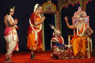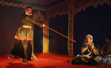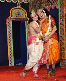 Bhagavata Mela: 76 and still going strong - G Ulaganathan e-mail: ulag_nath@yahoo.com June 29, 2016 It is May last week and despite the blistering heat, one can’t help travelling to Melattur, the scenic village on the outskirts of Thanjavur, to be part of the colourful Bhagavata Mela organized by Sri Lakshmi Narasimha Jayanti Bhagavata Mela Natya Nataka Sangam. From its inception in the 15th century, this dance drama tradition has been kept alive by the Bhagavatars donning various roles and enacting stories from the Puranas. ![]() ![]() Prahlada Charitram This year marks the 76th year of the seven-day festival organised in the present form and it was a treat to sit through the whole night and witness Prahlada Charithram, Harischandra (part 1 & 2) and a medley of various other performances. The stories were narrated to an almost full house audience through a beautiful blend of dance, music and dialogue. The master of the show was undoubtedly Guru S. Natarajan who planned the event meticulously and also performed varied roles like Leelavathi in Prahlada Charitram and Chandramathi in Harischandra with aplomb. He was ably supported by all the dancers and musicians, and the people of the entire village. Though not in a stylised form these dance dramas were very communicative and touched the hearts of those present. Though a little crude in form, one could witness the energy and bhakthi that came to the performers naturally. In fact, after the completion of Prahlada Charitram in the early hours - around 5am - some of those playing roles like Mahavishnu went into a complete trance. The play began the previous night and the performers were on stage continuously for more than 7 hours. The week-long festival coincided with the Narasimha Jayanthi on May 20. It was quite obvious that the preparation and presentation of the natakams involved absolute dedication on the part of the performers, who are inheritors of this great legacy. They also perform multiple roles and often there is hardly time for any rehearsals. This year, the festival opened at Sri Varadaraja Perumal temple on May 23 at 9am. Arayar Sevai by Sri Rama Sarma and a vocal concert by Chitra Bilvam and Namasankirtanam by Udayalur Kalyanaraman were the highlights of the first day. The formal inauguration was done next day at about 9.30pm by Dr. Padma Subrahmanyam who paid glowing tributes to Melattur and to S. Natarajan for keeping the tradition alive. There were two highlights this year. The first was the debut of young Dhruv, the grandson of Natarajan and son of dancer Priyamvada Murali, in Prahlada Charitram. The young chubby boy took to the stage like a fish in water and guided by his able grandfather on stage, performed his role impressively. ![]() Harischandra