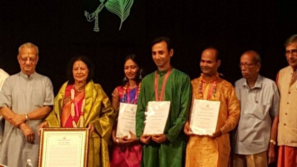 Krishna Bharatham - Lalitha Venkat e-mail: lalvenkat@yahoo.com Photos: Yoga August 23, 2016 Since 1997, Natyarangam, the dance wing of Narada Gana Sabha, has presented a thematic festival every year in Aug/Sept at the Narada Gana Sabha auditorium in Chennai. This year’s theme Krishna Bharatham (Aug 12 – 18) explored the various incarnations of Krishna through a presentation of the visionary works of great poets and composers, danced by a duo. As the resource persons are eminent scholars and experts from various disciplines, their enlightening talks on the evening’s theme before the commencing of the dance program, is usually a highlight in itself. ![]() L to R: N Gopalaswami, Saroja Vaidyanathan, Medha Hari, Praveen Kumar, M Balachander, Charukesi, PC Ramakrishna On August 12, 2016 on the inaugural evening of the festival, the following artistes were awarded - Obul Reddy Endowment Award to Bharatanatyam dancer P Praveen Kumar from Bangalore, Sudharani Raghupathy Endowment Award to mridangam artiste M Balachander, Vasanthalakshmi Narasimhachari Endowment Award for talent promotion to Bharatanatyam dancer Medha Hari. Delhi based senior Guru Saroja Vaidyanathan was honored with a purse and medal. ![]() Tanjore painting This was followed by a delightful, but rather long talk by Dr. Sudha Seshayyan on the different facets of Krishna as experienced by the Alwars (saint poets). Uniquely, all the 12 Alwars have sung something about Krishna. The Alwars not only sang about Krishna but lived his life. Kulasekhara Alwar felt close to Rama for several reasons, one being that both were born under Punarpoosam star. He transformed himself and sang as Devaki. For Andal, Krishna was everything, from the child in Vrindavan to the love of her life. Andal would rejoice in envisioning her merging with her lord. Thirumangai Alwar considered himself a parakala nayaki in his adoration of the lord. Periyalwar as Yashoda brought up Krishna. Unfortunately, the power point presentation did not work out. ![]() Uttiya Barua & Radhika Vairavelavan Radhika Vairavelavan and Uttiya Barua presented the different stages of the growing Krishna from the cradle to the butter eating episodes, lifting the Govardhana mountain, Garuda’s wings providing shade for the young Krishna when he’s tending to his cows, Andal kalyanam and finally a thillana. The light effect to denote Krishna’s parents behind prison bars is worth mentioning. Sasirekha Rammohan (nattuvangam), Jyotishmathi Sheejith (vocal), Vedakrishnaram (mridangam), Sruti Sagar (flute) and Jaya Shekar (veena) provided music support. Uttiya Barua shares his experience. “As a Bengali, Alwar was a new word for me and on Radhika’s advice, I got a book Nalayira Divyaprabandham and started reading the translation. But from where to where should I read? Radhika and Dr. Sudha Seshayyan helped me to sort it out. Then we took help from Dr. Raghuraman, put together our own ideas, Dr. Vanathy Raghuraman gave us the music and we started choreography. But so many ragas were new and the literature was very heavy for my understanding. Again we got help from Raghuraman sir for better understanding but now was the main challenge - choreography. Radhika loves to play with rhythm whereas as a Bengali, I am more into drama element, but within a few days we understood each other and our natya and natakam blended. Thanks to the challenging topic, I have learnt beautiful literature, new ragas and unusual jathis. And I have seen Lord Krishna from a different view point.” ![]() Patachitra The ‘technical glitch’ again on the second day resulted in almost a half hour being wasted while we got to see a silent film of resource person Dr. Pappu Venugopal Rao talking about the Geeta Govindam (since he was away in Manasarovar!). When it did start working, it was in fits and starts and it finally conked out after a few minutes. In those few minutes, we learnt that Jayadeva was the foremost composer in both Carnatic and Hindustani. He composed in Sanskrit and even in that, he created his own style. He wrote only 24 songs but they are so popular that all major dance styles include a Jayadeva ashtapadi in a presentation. The uniqueness of Geeta Govindam is that, Radha was an obscure character until Jayadeva made her the heroine. ![]() Shabana & BK Shafeekuddin BK Shafeekuddin and his dancer wife Shabana presented a well conceived and coordinated sequence of slokas, ashtapadis and events from Jayadeva’s life. There was never a dull moment. Starting with a brief shloka “Meghair meduram,” a pushpanjali set by Vanathy Raghuraman, an invocation to Vasudeva was followed by “Srita Kamala” performed behind a tirasheela. The first ashtapadi “Pralaya payodi jale” was about the 10 incarnations where Krishna is not an avatar but he’s supposed to be the one who has taken these avatars. “Lalita lavanga lata,” “Chandana charchita,” “Mamiyam chalita,” “Nindati chandanam,” “Yahi Madhava,” “Priye Charusheele” and “Kuru yadu Nandana” were some of the ashtapadis the duo performed to. The sakhi shows Radha that Krishna is also playing around with the gopis, Radha gets angry, sakhi conveys that to Krishna, a repentful Krishna approaches Radha, but she spurns him much to his anguish, sakhi then conveys Krishna’s anguish at the separation to Radha. Charmingly depicted was the short story of how when Jayadeva has gone for his bath, Krishna disguised as Jayadeva, himself wrote the lyrics “dehi pada pallavamudaaram” (Krishna bows down his head to the lotus feet of Radha) on the palm leaves in Padmavati’s presence, takes the prasadam prepared by her, steps outside and vanishes. When Jayadeva returns from his bath, he sees the finished line and is ecstatic that Krishna has indeed blessed him by penning what he himself had been wanting to. Radha finally relents and the pair glows in their love for each other, smoothly moving into the concluding thillana like piece on