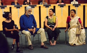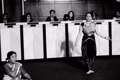 The final highlight of the two-day event was a very successful and thought-provocative ‘Performance as Research’ creative choreography entitled “Sweating Saris” based on Priya Srinivasan’s award-winning book entitled, Sweating Saris: Indian Dance as Transnational Labor (Temple University Press, 2012). This unfolded inside the inner sanctum, as it were, of Irvine City Hall Council Chambers where the councilors were the young dancers who had performed earlier in the evening on the City Hall’s outdoor Plaza, and in the Park, now sitting in plush swivel chairs arranged in the round, looking at the performance by their guru Ramya Harishankar, and her friend and collaborator Priya Srinivasan. “Sweating Saris” was a complex, interactive, multimedia work that deconstructed the finished and polished Bharatanatyam stage performance usually witnessed by an audience that remains unaware of its pre-performance state as “a form of labor.” This idea is explored in Srinivasan’s book where the early 20th century history of Indian dance is contextualized. Srinivasan excavates certain hidden histories, bringing to light the unacknowledged influence of Indian nautch dancers on Modern dancer Ruth St. Denis, followed by Martha Graham. While these Western icons of Modern dance do not acknowledge the insights they derived from the Indian performers, the exact opposite scenario is rife on the Indian scene where artists pay huge obeisance to their gurus. This is part of Indian tradition that will continue, asserting a lineage and legacy of the classical arts; however, at times, such valorization of gurus can be overdone. This historical backdrop to the “performance as research” was conveyed and interrupted in effective post-modern ways, by Priya herself taking on her different autobiographical roles with a wonderful sense of humor and levity involving the audience as participants on her journey. First, she plays being a student of Bharatnatyam in Melbourne, Australia under guru Dr. Chandrabhanu, the rigors of that teacher-student relationship fraught as such relationships often are, with issues of labor and power, then transforming to another stage of her academic life when she came to Ramya’s studio in Irvine to observe her teaching, then taking class with her. Ramya as guru, played out how her teaching transpires in the diaspora to American-born students of Bharatanatyam. Ramya’s knowledge of certain padams and javalis, her melodious singing voice in Carnatic style were all inspiring modalities for translating the meaning and movements of the old padams to her modern students. Priya transforms from wearing black leggings and kurta to putting on layers of clothing right on stage into a modern day performer whose style of costume harkens back to the early dancers, in particular, a projected visual image of T. Balasaraswati in araimandi with loose pants and fitting blouse. Even in a more performative non-verbal than her earlier talking mode, Priya continues to break the flow of her movements with questions often directed to the audience, questioning the teaching process of Indian dance, and the knowledge of its historical and socio-political contexts often left out of the teaching. The point is made subtly that there is use of improvisation both in traditional Indian dance as well as in contemporary dance, and that it is as important to revisit, deconstruct, unpack the wealth in traditional forms as it is to remain open to the wealth of movement and sound styles in a globalized world that we all inhabit in the 21st century. Ketu H. Katrak is Professor, Department of Drama, at the University of California, Irvine. She is the author of ‘Contemporary Indian Dance: New Creative Choreography in India and the Diaspora’ (Palgrave Macmillan, 2011). |