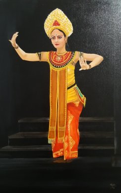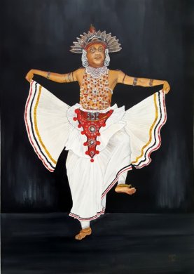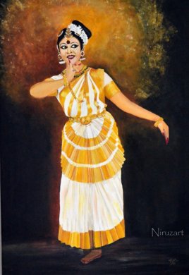 Dancing hues: A painted feature on dance - Padma Jayaraj e-mail: padmajayaraj@gmail.com September 15, 2016 Dancing Hues by Nirupama Ramesh was a unique show that exhibited a series of paintings done by her on dance, in Lalitkala Akademi Hall, Thrissur, Kerala. Nirupama, trained as a landscape artist, quit her job to enter the field of sculpture and painting. Perpetuating the family legacy from her grandfather, a war veteran who was a gifted sculptor, Nirupama took another bylane. From sculpting miniature clay models of musical instruments she is moving ahead with scale models. Based in the Middle East, she loves to travel. Travels opened the gates of different dance forms which inspired her to take up the brush. With the iconic Nataraja presiding over her venture the show Dancing Hues opened Nirupama’s wonder world. Her paintings fall into three categories found all over the world: folk, religious, and classical, with an introductory note to each to guide the viewer. Nataraja, the iconic dancer brightened by a huge lighted lamp takes the viewer to the world of dance. Each painting, acrylic on canvass (90cm x 60cm), is curated in such a way that you feel you are entering the threshold of a dome in which dancers are caught within their movement. Their costumes and their characteristic feats reveal their identity. Except some, most of the paintings do justice to the dance form. ![]() Balinese dance: In the island of Bali in Indonesia, the epic performances of the Ramayana and Mahabharata are common. The dancer here portrays the Balinese version of the Hindu epics. ![]() Sufi Kathak blends the mysticism of Sufism with the classicism of Kathak. Sufi poetry existed in the form of Qawwalis in the Indian sub-continent and Kathak is a classical art form of western India. Sufi Kathak is a part of the mainstream; the theme, costume and music are different but the grammar is the same. ![]() Kandyan dance native to Kandy, in the central hill region of Sri Lanka originated from an ancient purification ritual performed by males. The elaborate costume, particularly the headgear, is considered sacred. Today the elaborately costumed dancer epitomizes Kandyan dance, which highlights Sri Lanka's culture. ![]() Manipuri from the North Eastern state of Manipur is a riveting dance form unique in its costume. ![]() Mohiniattam, the dance of the enchantress of Kerala, is associated with the famed Swathi Thirunal. ![]() Odissi originated in Odisha in Eastern India is known for its sculptural stances and poses. ![]() Spanish Flamenco, known for its gypsy origin is a vigorous dance form emphasizing the rhythmic tapping of the foot. A popular dance in theatrical settings, today is still performed in people’s homes to celebrate occasions. ![]() Ballet Originated in the days of Italian Renaissance, Ballet developed into a concert dance in France and Russia. Women in billowing white skirts dance on their toe. ![]() Bharatanatyam that evolved from Daasiyattam of ancient times is an Indian classical dance today. It was performed in temples of Tamilnadu. Some believe that it used to be a fire dance, the mystical manifestation of the metaphysical element of fire in the human body. The movements of a dancing figure resemble a dancing flame. ![]() Known as Khmer, the classical dance of Cambodia belongs to the Royal court, ceremonial in function. Its elaborate costume, stylized gestures accompanied by an ensemble of traditional music and instruments has a unique charm. ![]() Kabuki, a classical Japanese theatre-dance is famous as the “art of singing and dancing.” Kabuki theatre is known for its stylization of its drama and for the elaborate make- up forming a language of signs and signals. ![]() Masai Adumu dance of Kenya, Africa, is a folk form performed by the Masai tribe. The jumping dance celebrates the coming of age of a young warrior. Within a circle, two or three young men start the jumping dance, always on their toes and maintaining an erect posture. The highest jumper gets the bride. ![]() Kialegee is from Middle East. The female dance is a celebration of the body. The movements are very feminine and rhythmic. The dancers move to create undulating forms resembling the waves of the sea. The long hair flowing in the wind is characteristic of this picturesque folk form of the island nations of the Middle East. ![]() Lavani from Maharashtra is a vigorous folk dance in traditional costume of 9 yard saree. The sensuous performance synchronizes with the captivating rhythms of dholak, the native percussion of the land. ![]() Kartuli is the quintessential Georgian dance. Only the female figure is painted here. The couple performs the dance, which has not been choreographed for the stage to date. But dancers follow definite rules of sequence between the male and the female. The dance expresses chivalry of Georgian times. ![]() Tanoura refers to the colorful skirt of the dancer which has function in its whirling movement. The sufi dance has a visual effect with the swirling skirt enhancing a dynamic centrifugal balancing feat. ![]() In Kazakhstan, based on the ethnographic observations of the local nomads, Soviet choreographers invented traditional Kazakh folk dances such as Akku. Many cultures in Kazakhstan have a strong tradition of instrument playing, traditional dancing, and theatrical performance. The cities of Kazakhstan cater to the promotion of performing arts. ![]() Bhangra from Punjab is a lively form of music and dance. While Bhangra began as a part of harvest festival celebrations, it eventually became a part of such diverse occasions as weddings and New Year celebrations. ![]() Ghoomar, a traditional folk dance of Rajasthan among the Bhil tribe is performed by women in swirling skirts accompanied by singing of men and women. This folk dance gets its name from ‘ghoomna,’ the pirouetting which displays the spectacular colors of the flowing ‘ghaghara,’ the long skirt of the Rajasthani women. There is a