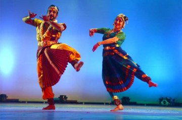 Poonthanam, it is believed, wrote the Jnanappana, soon after losing his child within a few days of its birth. Overcome by sorrow and grief, the production begins with the wailing of the women folk, the funeral pyre and the helpless father going into a trance. It is with this episode Vineeth began the performance. Clad in white as a devout Namboothiri, Vineeth appears as Poonthanam on his child’s annaprashnam day (the day when the child is fed its first morsel). Soon, we hear his wife’s cries and it is revealed that the child is no more, leaving the couple shattered. Musical score by Sharreth enhanced the gravity of the situation effectively. The mother, her condition after the tragedy and child’s funeral were depicted through shadow play. It was a clever move on the part of Vineeth to avoid showing death on stage. But to the audience it had an element of shock and it is quite depressing when the dance drama begins with a tragedy. Though the poet begins the work with the death, one felt that the choreographer could have used his artistic liberties to set a happy mood, perhaps a solo dance in praise of Lord Krishna. After the dramatic start, Poonthanam discovers the poet in him. The phrase unnikrishnan manasil kalikumbol,unnikal mattu venamo makkalai (When there is Krishna in your heart, do you need children of your own?) transforms him and he soon gets over his personal tragedy. Shyamini as little Krishna brings about this transformation. As Poonthanam sees this little Krishna, he begins to gather courage and seeks refuge in his God. As he goes closer to the lord, Poonthanam sees Krishna within himself, and realizes the purpose of human existence. As dancers give life to his philosophical metaphors and divine imagery, the brilliance of Vineeth and Lakshmi as dancers was in full flow. While Vineeth was full of energy and was like a live wire, Lakshmi proved to be an admirable foil oozing charm and grace. The beautiful dancer was in full flow with classical Bharatanatyam adavus as well as sancharis. Considering the fact that it is difficult to cover the entire work in a two hour concert, Vineeth did well to increase the pace of the dance numbers. While those who could follow Malayalam had no problem in understanding the philosophical connotations, those who were not familiar with the language had some difficulty going with the tide. Perhaps some explanation in English midway could have been of some help. The only cinematic element came in the final scene, where the rituals and darshan of Lord Guruvayurappan was created on stage rather elaborately. Special credit must go to the little children of Uthara Antharjanam’s dance school who were dressed as little Krishnas. They also stole the show. Another notable contribution was from singer K.S. Chitra whose voice was quite in keeping with the bhakti element which formed the backdrop to this impressive production. G. Ulaganathan is a senior writer and journalist based in Bangalore. |