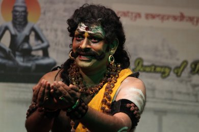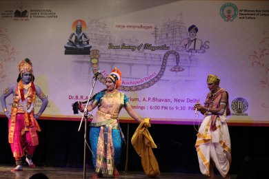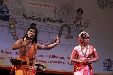 Natya Sampradhyam: Dance journey of Bhagavathas - Sudha Sridhar e-mail: sudhasridhar@hotmail.com Photos: S. Raguraam November 6, 2016 ‘Natya Sampradhayam – Dance journey of Bhagavathas,’ a four day festival was organized by International Dance Research and Training Center (IDRTC), Kuchipudi, in association with Andhra Bhavan, from October 20 to 23, 2016 at Andhra Bhavan, New Delhi. The festival was supported by Sangeet Natak Akademi and Indian Council for Cultural Relations. The Bhagavathas of Kuchipudi, one of the natya mela traditions of the country, wherein the male members of the traditional families who were adept Kuchipudi artists well versed in the nuances of the art form used to travel extensively at times for months together to perform various Kuchipudi Yakshaganas. They had some outstanding and well appreciated melas like Chinta vari melam, Mahankali vari melam, etc, a commendable self sustaining effort from the traditional families of Kuchipudi totally dedicated to the art form. The advent of various cultural bodies post Independence saw the shift in patronage pattern from royalty and the affluent to the more organized cultural festivals by both Government and NGOs. Further, with the efforts of some constituents of the Bhagavathas, the Kuchipudi art form itself spread across the length and breadth of the globe opening the doors to the distaff side. It paved way for institutionalized way of teaching to that of the gurukul system followed hitherto and saw quite a few luminaries from the general populace too take centre stage much to the credit of the Bhagavathas’ magnanimity in sharing their art form. However, in the bargain, the Kuchipudi Yakshaganam and the Bhagavathas, the progenitor, were sidelined from the mainstream and the solo style has come to be synonymous with the art form itself. It is in this background, that the current initiative by the Kuchipudi Bhagavathas’ effort through the IDRTC president Vedantam Raghava and its director Tadepalli Dr. Satyanarayana Sharma (Festival Director) is very commendable. A long overdue concerted effort in both showcasing the richness of the art form as well as laying a foundation to re-establish the glorious ‘Dance Journey of Bhagavathas’ through a dedicated festival, that too at the capital city was akin to how among innumerable rain drops only a few get to become a pearl. On all the days the organizer stuck to the Kuchipudi Bhagavathas’ tradition of first Nritya Archana as salutation to Lord Nataraja followed by the traditional lamp lighting by the guests / dignitaries of the evening. The proceedings of the festival started with an excellent performance by Pasumarthi Mrutyunjaya Sarma. Keeping the tradition of starting any event with invocation to Lord Ganesha, he started with a krithi by Saint Thyagaraja, ‘Sri Ganapathini sevimpa rare’ followed by Prahalada Pattabhikesha sabdam and Ananda Tandavam as a finale. Mrutyunjaya’s performance literally set the momentum for the festival. This was followed by a performance by Abhinaya Nagajyothi and group from Delhi. She started with Annamaiyya’s keertana “Emani pogadudhu” followed by ‘Mahishasura mardini.’ In her Guru Seetha Nagajyothi’s choreography in Brindavana sarangi, Abhinaya performed jathis on plate rendered in paran style of taranas in Kathak almost on similar lines to how Vempati Chinna Satyam had shown gati bhedas in his most famous Hindola tillana. The first day evening saw the much acclaimed ‘Bhama Kalapam’, the masterpiece of the seer of Kuchipudi, Siddendra Yogi, led by Pasumarthi Rattaiah Sarma as Madhavi, Vedantam Venkata Nagachalapati as Bhama and Vempati Satyaprasad as Lord Krishna. The experience of Rattaiah Sarma was more evident than the age one should say, his role of Madhavi was enjoyed to the hilt by the audience with his situational spot comedy and that too very much in the context of the Kalapam. Most of the daruvus of the Kalapam was presented much to the delight of the connoisseurs. Since the singer Suryanarayana Rao was found wanting during the evening, Bhama character had to sing and perform at times during the Kalapam. ![]() Bhama Kalapam ![]() Mohini Bhasmasura Day two saw performances by artists from the capital city. T Reddy Lakshmi with her very brisk presentation set the ball rolling for the second day’s performances with an invocation to Goddess Durga, followed by a Swati Tirunal bhajan in praise of Lord Krishna in Hindi adapted to Kuchipudi with dramatization. She concluded with a tarangam on Lord Shiva. Her depiction and abhinaya were good in all the three numbers which were choreographies of her Guru Jayarama Rao. This was followed by a performance of young talented M S Vaishnavi, disciple of Seetha Nagajyothi, New Delhi. She brought to stage Krishna Sabdam followed by Atana Jathiswaram. The prime slot of the second evening saw the nritya nataka ‘Mohini Bhasmasura’ reportedly the last dance drama production by the Kuchipudi legend Vedantam Satyanarayana Sarma. The main character of the drama, Basmasura, as well as the lead artist who played the dominant role Chinta Ravi Balakrishna stole the show and the hearts of the audience. The need to deserve before receiving higher aspects of life was beautifully brought out through the dance drama by the group. The third evening saw Niressha Sannareddy start her performance with the famous ‘Jeyamu Jeyamu’, an invocation to Kuchipudi Goddess Balatripurasundari. This was followed by Lakshmi ashtakam, a composition of her Guru Vempati Ravishankar. She has a promising future being under the wings of a great teacher. The evening saw an exquisite production, ‘Sri Krishna Parijatham’ by Vempati Ravishankar. He brought back the work of his illustrious father Vempati Chinna Satyam to life ably assisted by the melodious rendering by the vocalist D.S.V. Sastry, raising the hopes of continuing the legacy of the doyen. The famous dance drama saw Mrutyunjaya Sarma as Sag