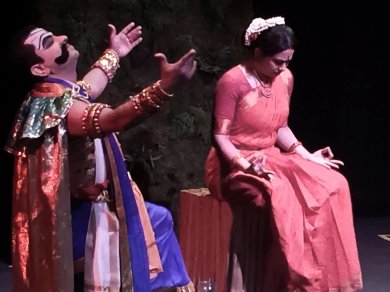 The part of the story when Shurpanaka seeks help from her brothers Khara and Dooshana, who are also destroyed by Rama and finally goes to Ravana, who in turn takes the help from Maricha asking him to take the form of the magical deer was told by the sutradara and the narrative ended with Maricha who was being pursued by Rama, shouting ‘Ha Lakshmana, Ha Sita’ in Rama's voice, leading Sita to think that Rama was in trouble. Again, focusing back on Sita, the story continues with Sita, in agony, ordering Lakshmana to pursue Rama, much against his will. When Lakshmana leaves Sita behind at Panchavati and goes in search of Rama, Ravana, the demon king of Lanka, enters in disguise as a sage and begs for alms. When Sita advances to give him food and take his blessings, he gains his demon form and tries to coax Sita to become his queen to which the angry Sita says that she is the beloved of Sri Ramachandra, who is virtuousness personified and that his immeasurable prowess will destroy Ravana and his entire demon clan. At this the angry Ravana drags Sita and takes her with him. At this point, the narrative comes back to the present, where Sita was in the Ashokavana lamenting on her ill fortune, when the rakshasi Trijata, who is supposedly Ravana’s agent meant to convince Sita to marry Ravana comes to meet Sita. Instead of glorifying Ravana per his orders, Trijata consoles Sita and tells her about her dream where Rama and Lakshmana came to Lanka and took Sita away after overpowering and killing Ravana. Sita takes her to confidence and tells her how she wishes that the dream came true and if it does, Sita ensures peace and happiness to Trijata and other Rakshasis. The narrative ends with Hanuman going to Lanka, meeting Sita in Ashokavana, convincing her that he is not a rakshasa trick himself and setting fire to Lanka when his tail was set on fire, by which time, Rama and Lakshmana come to Lanka and take over to destroy Ravana and save Sita. ![]() Gargi Panchangam as Sita made it appear like Sita really visited us in the Bay Area. She is a beautiful dancer, actor, musician par excellence and has perfect expressions with a great costume and makeup sense. She carried the role of Sita with virtue and zest. She also did justice to the role of Shurpanakha disguised as the damsel wooing Rama-Lakshmana brothers. Alamelu Iyengar as Manthara took us back to Treta yuga indeed, because she beat all the imagination the audience could have of that role. The young Kanchana Parameswaran as the vile Shurpanakha and Sindhu Singh as both Kaikeyi and Trijata were good, so were all other characters that supported these lead female roles. The most eye catching scene was that of a playful young Hanuman as well as the dialogues between Sita and the mature Hanuman. Hanuman setting fire to Lanka was spectacular and took the audience to the level of cheering Hanuman as he destroyed Ravana's ego. Music by Padmapriya Parameswaran and team was good. Shlokas from Valmiki Ramayana were used aptly in several situations. Singing of Hanuman Chalisa in praise of Hanuman when he was in action gave a fulfilling feeling to the habit of singing Hanuman Chalisa. The narrators adding commentary between scenes, sometimes cynical, sometimes spiritual or more practical would definitely add value to the new audience of Ramayana. This event was supported by Asian Art Museum in San Francisco and so, between each scene a few of the exhibits were brought on stage and explained. It was amazing to see Ramayana paintings as understood by artists across the world. There were exhibits from Indonesia, Thailand, Germany, etc and most of them showed some very specific depiction. Some were very true to the story, while some were artists’ imagination, none-the-less the thought of Ramayana being studied across the world by artists and scholars in indeed heartwarming. Overall, it was a great experience for the viewers. They staged two shows at the Lohman Theatre in Foot Hill College, Los Altos, for a house full audience no less. As we see, the narrative covered the entire Ramayana focusing on select female leads, which is another novel concept. Sitayascharitam Mahat – Great is the glory of Sita. Indeed! With such experimental productions, may the rest of the world, particularly the west, become aware of out great immortal epics. Kudos to Paramesh Gopi and Priya Parameswaran. They were instrumental in conceiving this unique production and taking Ramayana to another stage. Poornima Ramaprasad follows Indian classical music and dance forms. She reviews Indian dance and drama events in the San Francisco Bay area from time to time. |