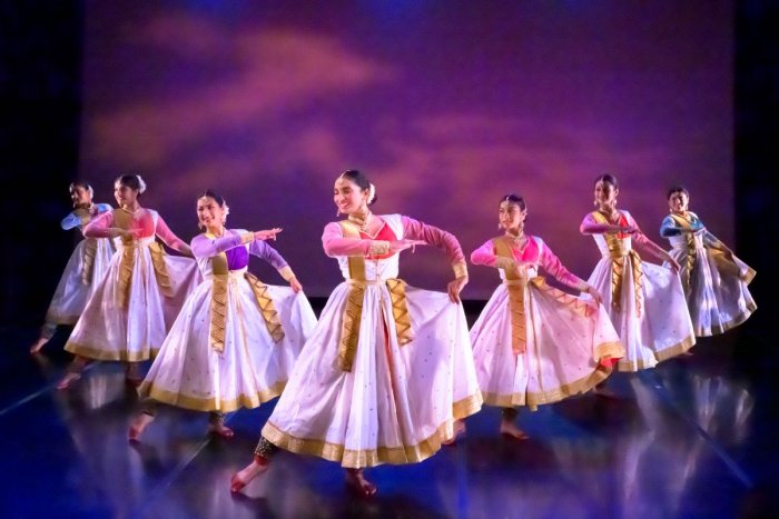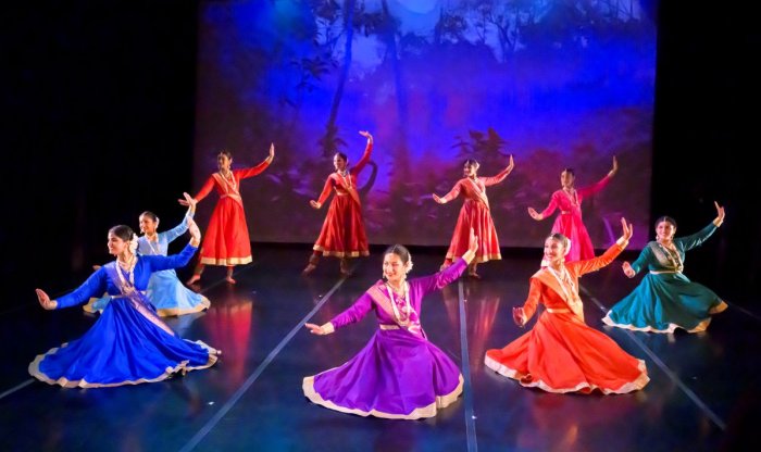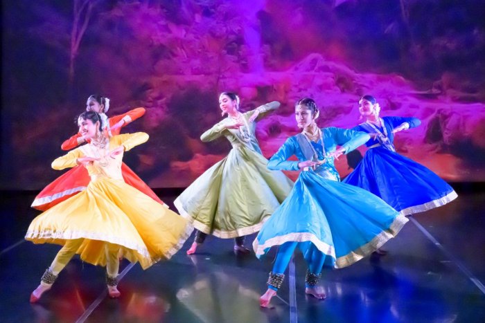 InSyncKathak's Prakriti: Kathak like lightning - fierce, fluid, unforgettable - Suparna Kumar Photos: Kyle Adler June 6, 2025 Stepping into the intimate Dance Mission Theater for Prakriti, presented by Anupama Srivastava and the InSyncKathak Dancers, it was immediately clear this was no ordinary performance. Staged on Mother's Day as part of the San Francisco International Arts Festival, Prakriti was a poignant and poetic tribute - not only to Mother Nature, but to the spirit of motherhood itself. The close-up setting allowed for an extraordinary connection, enabling the audience to fully appreciate every nuance of the dancers' artistry. As a celebration of both nurturing strength and unwavering resilience, it was a particularly fitting treat for the occasion, honoring the many forms maternal care takes in our lives and our world. Rooted in the rich classical tradition of Kathak, Prakriti ("Nature") was framed as a story about the precarious relationship between a compassionate yet authoritative mother and her most intelligent - yet often irresponsible - children: us. Narration between the pieces thoughtfully guided the audience through themes of creation, coexistence, change, and resilience. These threads were beautifully expressed in a sequence of choreographed pieces, each touching on different aspects of our complex bond with the Earth. The performance opened with Dhwani-Pratidhwani - Honoring Mother Earth, a powerful invocation that set the tone for the entire show. In Indian classical dance, it's customary to seek forgiveness from the Earth for stepping on her - an act of humility and reverence. This ritual transformed into performance through a stirring shloka dedicated to Bhudevi (Mother Earth), followed by a dazzling display of Kathak's hallmark footwork. Dancers delivered this "footwork only", crisp, complex rhythmic patterns with mathematical precision. Each segment of the show unfolded with precision and grace. ![]() Om OM - The Cosmic Dance of Creation unfolded as a meditative journey from silence to motion, inspired by the primordial vibration of OM - the sound said to birth the universe. Rooted in the mythology of Shiva, this piece evoked the pulse of existence itself. Dancers began with their backs to the audience, a bold and introspective choice that echoed the mystery of beginnings. Slowly, movement emerged - from the stillness of the spine to the awakening of limbs - mirroring creation's first breath. Set in raag Bairagi and woven with rhythmic intricacies of uthaans, tihais, tukras, and paran, it was a stirring reminder that all life rises from quiet intention into cosmic rhythm. ![]() Panchatatva Panchatatva - The Kaal Chakra of Creation, Destruction, and Recreation brought the five elements - sky, air, water, fire, and earth - to life through dynamic movement, striking lighting, and evocative visuals. Vivid background imagery - green hills, wind turbines, wildfires - paired with shifting lights helped transport the audience through scenes of harmony, chaos, and renewal. Drawing from real experiences of natural disasters in California, the dancers captured both the beauty and the might of nature. In the end, the piece gently reminded us that just as time can unravel, it can also mend - and we each have a role to play in keeping nature's balance intact. ![]() Dishaantar Dishaantar - Embracing the Change towards Sustainability was a truly captivating and inspiring performance that masterfully wove together narrative and classical Kathak. The piece brilliantly demonstrated how Kathak, with its intricate blend of nritta (pure dance), nritya (expressive dance with meaning), and natya (drama or storytelling), can powerfully convey contemporary social issues. This particular production leaned beautifully into the natya aspect, offering a compelling narrative-driven experience. The emotional messaging was delivered with profound sincerity, and the abhinaya was truly heartfelt. It was clear that the performers embraced the challenge of communicating complex social issues through the rich vocabulary of classical dance with remarkable dedication. The seamless group dynamics and evocative gesture motifs further enriched the piece, creating a truly memorable and thought-provoking artistic journey. ![]() Tarana The finale, Yaman Tarana - Harmony and Celebrations effectively culminated the evening's thematic and technical elements. One of the show's strongest Kathak moments occurred here, showcasing the group's impressive synchrony and dynamic stage formations. Concentric circles, diagonals, and cascading layers revealed a masterful command of ensemble choreography. The dancers performed with maturity, executing synchronized chakkars, footwork, and seamless transitions between formations. Their unified movements and intricate formations - circles, lines, and radiating spokes - created a compelling visual metaphor for collective strength and harmony. The show also held deep reverence for legacy. Dedicated to Kathak legend Dr. Shovana Narayan in honor of her 75th birthday, Prakriti drew heavily from her iconic choreographies. Although these works originated in Indian contexts, they were transposed through a Californian lens - transforming traditional themes into locally relevant narratives. As the narration beautifully put it, "They have become our stories." Throughout the show, the dancers displayed a strong foundation in Kathak technique: well-articulated footwork, confident spins, and a clear sense of rhythm. There is still space to deepen abhinaya subtlety perhaps, but these are signs of a group evolving and experimenting within a classical framework - not deviating from it. In Prakriti, Anupama Srivastava and the InSyncKathak Dancers have successfully created a production that honors the form while daring to speak to the present. It is heartening to see young dancers engage with classical Kathak not just as a tradition to preserve, but as a living, breathing language to express 