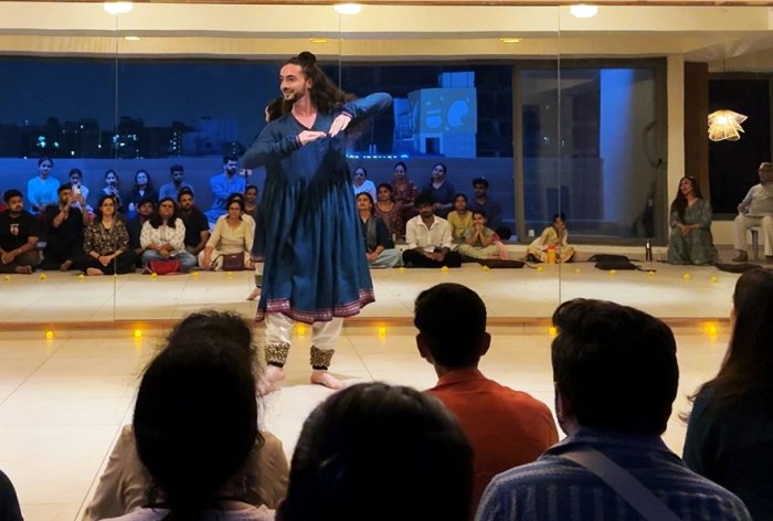 The soulful gatherings: Baithak Series - Bijoy Shivram e-mail: bijoyshivram@gmail.com Photos: Vidhi Shah June 18, 2025 "Art has the power to transform, to illuminate, to educate and to inspire." These words form the heartbeat of a quiet yet potent movement slowly shaping the artistic ethos of Ahmedabad - intimately felt within the sanctum of the Sanjukta Sinha Dance Company (SSDC). Through the deeply personal and carefully curated Baithak Series, Kathak exponent and choreographer Sanjukta Sinha offers the city's art lovers and practitioners something rare and precious - the gift of presence, of unfiltered artistic creations and of deep listening. In the classical Indian tradition, baithaks were revered gatherings held in private courtyards - sacred spaces where music and dance were not performed for spectacle, but offered as communion. A conversation. A surrender. Sanjukta reimagines this intimate format in a contemporary context, weaving it into the very fabric of SSDC. Here, dancers - both her disciples and invited guests - find a space to not only perform but also be. To evolve. To connect. To be witnessed in truth. For Sanjukta, curating is not about filling a calendar with events. It is about gathering energies, nurturing potential and fostering an ecosystem of dialogue and discovery within and beyond the studio. In this atmosphere of compassionate rigour, the Baithak Series has emerged as a luminous crucible for learning - especially for SSDC's students. While classes refine their form, these evenings refine their spirit. The closeness to the performance, the immediacy of expression, the vulnerability of the artist - all become part of a visceral education. The evening unfolded with three distinct voices in dance, each steeped in training yet marked by individual vision - a quiet celebration of discipline blossoming into authenticity. ![]() Shantanu Gosavi It began with a striking performance by Shantanu Gosavi - a designer by profession and a dancer by soul. A dedicated student of Sanjukta for over seven years, Shantanu's artistic evolution reflects the delicate alchemy of Sanjukta's mentorship - one that honours both structure and intuition. His presentation of Chaturang, choreographed by Sanjukta herself, was an elegant interplay of Thumri, Bandish, Bol and Tarana, set to Raag Yaman and Ada Chautaal. As Shantanu rose to make his entry, his lean frame, crowned by long cascading curls, evoked the very image of Shiva- poised at the threshold of creation and dissolution. In his movement, tradition did not stand still; it shimmered with freshness. The rhythmic precision of Kathak met a contemplative fluidity of expression - as if movement itself were prayer and emotion, its offering. Shantanu's dancing became a meditation - on aesthetics, on surrender, on being. ![]() Nirali Samani The baithak then welcomed guest artist Nirali Samani, an alumna of Kalakshetra and a Bharatanatyam dancer-scholar whose life reflects a seamless synthesis of performance and pedagogy. Currently pursuing her doctoral research under the guidance of Guru Sheejith Krishna and actively performing with the Sahrdaya Foundation, Nirali brought with her a quiet fire, an intensity anchored in years of discipline. Her deeply internalised approach, the clarity of lines, the stillness between phrases - all conveyed the maturity of someone who has lived with the art form not as ornamentation but as a daily practice of becoming. One felt the absence of the ghunghroos - an essential element of aharya abhinaya in Bharatanatyam - but even in their silence, the resonance of Nirali's dance lingered, filled with quiet conviction and strength. Her performance was less about form and more about essence. ![]() Vihanga Rukshan The final presentation was a compelling excerpt from Meherbaan by Vihanga Rukshan, a Kathak and contemporary dancer from Sri Lanka who has made India his artistic home for the past decade. A postgraduate in Kathak from JG College of Performing Arts and a devoted disciple of Sanjukta for the past five years, Vihanga embodies the luminous duality of strength and vulnerability, shaped by a deep-rooted sense of belonging and inquiry. Meherbaan, choreographed by Sanjukta, is a delicate, aching invocation of love and longing - a narrative of touch, voice, memory and silence. Set to raag Jaijaivanti and a rhythmical blend of Teentaal and Dadra, the work seamlessly wove together nritta, nritya and natya, drawing the audience into a shared reverie. As Vihanga moved - from resolute strength to silken grace, from expansive spins to subtle side glances - there emerged a haunting coyness, an internalized dialogue, a body remembering love like a fading scent. It was as though the dance was not being performed but remembered through the body. His transitions were like sighs, audible only to those listening with the heart. Each artiste, in their own way, illuminated the underlying philosophy of the Baithak Series - to create a space where art does not perform, but breathe; where the distance between artist and audience dissolves, and what remains is truth. In a time where performance often equates with production, where stages are grand but distances vast, these in-house evenings offer a rare intimacy. A soft return to the roots - where art is not spectacle, but sacred offering. The Baithak Series has become not merely a platform, but a hearth - a quiet, glowing circle of artistic exchange. A place where the flame of tradition is not preserved as relic, but kept alive - breathing, evolving and ever-beckoning. This is what true art does. It does not demand applause. It awakens presence. ![]() Son of journalists K Shivram and Amni Shivram, the first Malayali woman English journalist, Bijoy Shivram is an accomplished Indian classical dancer trained in Bharatanatyam and Kuchipudi. A passionate promoter of the arts and a skilled graphic designer, he currently serves as the Vice Principal of JG College of Performing Arts and the 
