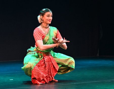 NCPA presents Shreyasi Gopinath and Manasi Deshpande- Chandra Anande-mail: chandra6267@yahoo.co.in Photos courtesy: NCPA July 22, 2025 NCPA, Mumbai, presented Shreyasi Gopinath (Bharatanatyam) and Manasi Deshpande (Kathak) at Experimental theatre, on 12th June 2025. A talented and confident Shreyasi Gopinath started the evening with her Bharatanatyam presentation. Varnam (Ragamalika, adi) was in Hindi language. It was a change from the often treaded theme of waiting for "union of atma with paramatma". The simple theme described the peaceful and meditative ambience of the temple, wherein picturesque atmosphere of the temple with the majestic gopuram, plants and creepers, temple bells and shrines were described in the order the devotee visits the temple. Through the description of the icons held by the main deity, one realises that it is a temple of Lord Nataraja, the supreme dancer, the master of rhythm and cosmic movement. The dominant mood of bhakti rasa was merged with wonder and admiration of the magnificent temple with its devout essence and sweet, fresh fragrances in the atmosphere. The lyrics penned by Shreyasi was translated into Hindi by Divyanand Jha, set to music by Easwar Ramakrishnan, with rhythmic inputs by Sivaprasad. ![]() Shreyasi Gopinath The Javali "O my lovely Lalana, Elane pommanti, Ituvanti Step is it fit to take?", often referred to as a "Company Javali", is a unique and historically significant one, dating back to the time of British rule in India when a cultural fusion of the Indian music with the British Band could be seen. What makes this javali particularly special is its blend of Tamil, Telugu, and English that helped to reach out to a wider audience. With its expressive melody and heartfelt lyrics, this Javali captures the delicate tension between love, apology, and longing of the hero who seeks his beloved and asks her to forgive and accept him. Here Shreyasi, made a rare act of entering the auditorium through the aisle, all the while performing to the music and sat on the front edge of the stage for the pallavi section of the song and accessed the stage on the later part of the item presentation. This particular part seemed a vagary and did little to uplift the dramatization of the song. A vibrant tillana (Desh, adi), composed by Lalgudi G. Jayaraman followed. In the lyrics of the charanam, the devotee lovingly calls out to Lord Muruga, requesting him to come forth and bless them, just like he once blessed Valli with his divine love and married her. Here the abhinaya performed brought out the devotional fervour of the song. But the rhythmic brilliance was marred as some movements did not sync with the recorded music. ![]() Manasi Deshpande and disciples In the second part of the evening's presentation, Manasi Deshpande, along with her students, presented 'Nritya Sutra'. This theme was an attempt to remain anchored in the soul of tradition and portray a fresh, thoughtful lens that resonated with today's audience. It was an attempt at delicately intertwining the richness of Kathak's traditional repertoire with a contemporary approach to staging and expression. Ganesh Dhrupad composed by Chaitanya Kunte, was presented in a sangfroid manner where a temple like atmosphere was visualised and created by the artistes. The features of dhrupad form known for its immersive meditative quality was well explored through rhythmic movements and abhinaya. Temple activities and various ways of praying to Lord Ganesha was portrayed. The different attributes and graces of the Lord was defined through gestures and postures, transforming the performance as a credible invocation to Lord Ganesha. Kathak elements such as Aamad, Paran, and Tatkar, which showcased the beauty of rhythm, precision, and grace that defined Kathak as a classical art form, was presented by Manasi Deshpande. The audience was taken on an abstract journey of pure traditional Kathak with technical brilliance and aplomb. The canvas of space was explored drawing lines, shapes and intricate patterns through nritta movements applied to the 10 beat rhythmic cycle of Jhaptaal. ![]() Manasi Deshpande The performance of Meera Bhajan, "Badariya re baraso sawariya ke des", composed by Pt. Jitendra Abhisheki, beautifully portrayed the proshitapatika nayika, the heroine who is separated from her beloved who is away on work, one of the eight classical heroines as described in Natyashastra. In her yearning for the beloved, the heroine (enacted by Manasi) turns to the clouds, pleading with them to carry her message and urge him to return soon. The supporting five dancers gave sancharis for the lines, presenting various ways the heroine spent her days immersed in his memories, how her heart ached with longing, and the beautiful memories she shared with her beloved while he was with her. Bhajan-numa Tarana, a lyrical and melodic composition by Pt. Dinkar Kaikini, blending the devotional essence of a bhajan with the rhythmic vibrancy of a tarana, offered a vivid portrayal of Lord Krishna, capturing both his divine charm and heroic deeds. It was a celebration of Krishna's strength, grace, and divine playfulness. Through brisk movements and expressive abhinaya, the dancers brought to life two dramatic episodes from Krishna's life - the slaying of Kamsa and the subduing of the serpent Kaliya. Gat Bhav followed by an elaborate Shiva Paran presented as a finale, narrated the poignant story of Sati, wherein her deep devotion, sacrifice, was delineated dramatically through the events that led her to give up her life in protest, by students of Manasi. And a Shiva Paran that depicted Lord Shiva's fury and cosmic rage upon learning of Sati's fate was performed by Manasi. The Shiva Paran could have been a little more elaborate to effectively show the intensity of Shiva's emotions. The piece gently came to rest with a Shanti Mantra, invoking peace and closure - a reminder of the eternal balance between creation and dissolution. The present