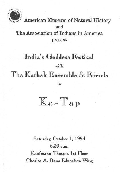 e-mail: janakipatrik@gmail.com North Indian Kathak and American Tap: KA-TAP Photos courtesy: Janaki Patrik April 27, 2020 Tatkar and Tap. In my mind the combination was a no-brainer. By the time I hit my 20th anniversary as a Kathak dancer, I had thought about the similarity of Kathak tatkar and Tap dance steps for almost as many years. The opportunity to create a Kathak-Tap duet presented itself at Stephens College in Columbia, Missouri, where I was an artist-in-residence from January through March 1990. In conversations with Michael Simms, the ballet teacher in Stephens College's Dance Department, I learned that he had been a "hoofer" - a slang term for tap dancer. Michael somewhat reluctantly agreed to bring his tap shoes out of the back of his closet, but once we got into the studio, he enthusiastically joined in our "foot play". We decided to perform a duet to conclude my Kathak demonstration for the Dance Department's Spring concert. We chose an American standard composed in 1930, entitled "On the Sunny Side of the Street". Grab your coat and get your hat - Leave your worry on the doorstep - Just direct your feet - To the sunny side of the street. Can't you hear a pitter-pat? And that happy tune is your step - Life can be so sweet - On the sunny side of the street. - Composer: Jimmy McHugh, Lyricist: Dorothy Fields The bluesy rendition played and sung by the great American jazz trumpet player Louis Armstrong gave us just enough time to "strut our stuff" individually, punctuated by sections when we strolled arm-in-arm to the lighthearted lyrics. We ended the duet when Michael twirled me with a swing dance (1) move and threw his top hat into the audience. We had a ball! I don't have even one photo from that informal performance. The invention of camera-phones was still years in the future, and so was the current document-every-moment frame of mind. But these photos of couples swing-dancing give an idea of the exuberant informality of our choreography. ![]() Swing dance @ The Apollo Theater ![]() Swing dance @ The Nevermore These photos also bring to mind, that my choreographic "toolbox" includes a broad range of dance and music techniques which I have studied, plus visions in my mind's eye and sounds in my inner ear which originate in my life as an American. I don't edit them out just because I want to create choreography based on Kathak. Like many choreographers, I use moves and sounds and visions which my life experience has given me. For example, I don't follow the "no touching" convention in typical Indian dance partnering. Rather, I try to find ways within the tradition for appropriate touch-partnering. The little piece of fluff, which Michael Simms and I created, continued to tickle my subconscious. The concept was just waiting to be expanded into a full-blown production. That opportunity arose in 1994, when I was back in India on an American Institute of Indian Studies intensive Hindi language program, based for six weeks in Landour, Mussoorie and for another six weeks in Varanasi. I was surprised during an August monsoon downpour in Varanasi when a delivery boy from the local grocery store - which had the only public phone in the neighborhood - came sloshing through knee-high rain water to tell me that I had a call from America. The phone call was from Arun Aguiar, Vice-President of the New York Chapter of the Association of Indians in America. Arun asked whether I could put together my artistic team to perform "that Kathak-Tap program" I had mentioned to him. When I had left New York City in early June, Arun had not yet even proposed Ka-Tap to the AIA program committee. In the intervening two months, the committee had met and decided to present the Kathak-Tap production as a main-stage attraction for its annual Goddess Festival at the American Museum of Natural History. The only catch was that I wasn't returning to New York City until August 29th, and the program was on October 1st! Of course I said YES. Since the AIA and Natural History Museum's joint publicity mailing was going to press in just a few days, on the spur of the moment I named the production KA-TAP. I gave Arun Aguiar the name of tap dancer Neil Applebaum, whom I had already spoken with about the concept before I left for India. I also asked Arun to contact tabla player Samir Chatterjee. On the basis of that one short phone call, I returned to New York City, ready to go into an intensive rehearsal schedule to create a one-hour program with two new choreographies and two new collaborators -- in the space of 30 days. Neil suggested that Olivia Rosenkrantz, another rhythm tapper, join us. The KA-TAP music ensemble formed quickly. Samir Chatterjee was part of the publicity photo shoot with us three dancers (shown below), but he accepted a booking for October 1st, and as a replacement he suggested one of his senior students, tabla player Sajjad Chowdhry. Vocalist Sanghamitra Chatterjee and sitar player Ted Morano completed the Hindustani music ensemble. Neil and Olivia recruited jazz musicians with whom they were regularly performing - Frank Kimbrough on keyboard, Ben Allison on string bass and jazz vocalist Pat Tortorici. ![]() Janaki Patrik, Kathak dancer; Neil Applebaum and Olivia Rosenkrantz, Tap dancers; Samir Chattterjee, tabla player Photo: Frank Gimpaya My goal was to create a program with items displaying Kathak and Tap separately, plus opening and closing items which interwove the two techniques and highlighted their similarities. I would pair Sawal-jawab with the tradition of a Tap dance challenge ("duel"); tihai ending on sam, followed by a pause, paired with Tap's "3-and-a-break" convention; bol parhant with jazz "scatting", sthai-sthai-antara-sthai with the standard A-A-B-A 32-bar American song form of many of the so-called "Jazz Standards" (2). These were fundamental structures in our two distinct vocabularies, which would give form to our dance and music conversations. Introducing the very first per