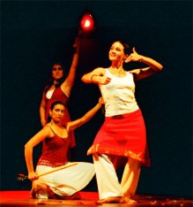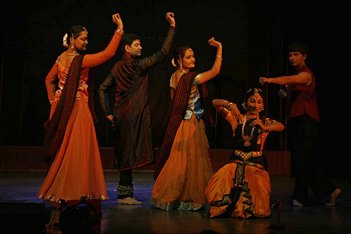 It was full house again on Dec 7 for a solo Odissi performance by Bijayini Satpathy, preceded by an item on navagrahas by Yamini Muthanna for Tanishq. This time the video screens on the sides were missing but the white Airtel banner remained. Bijayini presented Mahishasuramardhini, 2 ashtapadis from Geeta Govinda and the final piece from Ramayana where she played 6 characters - Rama, Lakshmana, Mareecha, Ravana, Sita and Jatayu. The audience was so enthralled by her riveting performance that the applause went on and on. If only the banner could be placed where it would be visible to the audience yet not interfere with the performance on stage - otherwise the light colored costumes blend into the whiteness of the banner and also make the light bounce off the dancers' faces. The Bengalooru Habba is free for the public. But there was a general feeling among some dancers that there are so many talented artistes from other parts of Karnataka who could be invited to perform at the Habba instead of the same familiar names a situation not unlike the Chennai festival scene. The venue shifted to the Palace Grounds on Dec 8 for a Thaala Vaadhyam headed by A Ananthakrishna Sharma. This was followed by an impromptu taal, sangeet and nritya improvisation by the stalwarts, tabla maestro Pt Kishan Maharaj, Hindustani vocal duo Rajan and Sajan Misra of Benaras gharana and Kathak maestro Pt Birju Maharaj. Though the Kathak guru looked smaller physically and a bit wan, his movements as he presented mostly excerpts on nature and Radha, were as mesmerizing as ever. It was an extraordinary, magical evening to witness the rare coming together of these accomplished artistes Birju Maharaj humorously referred to it as Ganga, Jamuna, Sarawathi coming together, of old, older and oldest! Many felt the show should have been held at Chowdiah Hall and not in the cold outdoor of the Palace Grounds where the wind howled into the mike, in competition with the exquisite alaap of the Misras! It was about 10.20pm when this performance ended and the next was to be a music show by Delhi group Bandish. Almost everybody left. An audience for a Kathak show and one for an indo-pop show are vastly different, and we were left with a feeling that it is unfair to slot artistes like this. Fortunately the organizers featured Bandish the next day along with other music groups. Bangalore has expanded so much that people travel long distances to reach the venue, the weather is chill, yet the organizers had food courts, but did not feel the need to organize any toilet facilities for the audience!! Also, almost all announcements are exclusively in Kannada, so it's difficult for those who don't know the language. Speaking before the Birju Maharaj concert, the announcer wondered why the audience did not clap for something she repeated for the second time (again in Kannada). There was still no reaction from the audience but one voice piped up, "Because we don't understand!' but that anyway got lost in thin air! On Dec 10, the Karnataka Tourism and Dept of Kannada and Culture presented an Odissi performance by Ramli Ibrahim and the talented dancers of Sutra Dance Theatre from Malaysia in Vision of Forever' at Rabindra Kalakshetra. The beautiful backdrop, lighting and inspired performance was indeed a vision as the title suggests and left the audience spellbound. Having read about the costume controversy of Ramli's dancers in narthaki.com last September, a couple of dancers could not understand what was so controversial about the costume. That's because in this tour, the top piece almost covers the whole torso and ends in a V at the navel, exposing only a couple of inches on the sides when the dancers raise their arms! Before the performance, there was a half hour presentation by the Tourism secretary on the proposed measures to boost tourism in Karnataka. What needed immediate attention however were the many tacky and damaged seats! Rabindra Kalakshetra is a well designed, compact space, so it is much sought after. However, dancers are quite peeved that there seems to be some discrimination - the hall rental for a dance program is four times more than for a Kannada play! The seventh annual Kala Nadam Festival took place on Dec 11 and 12 at the ADA Ranga Mandira. A short video screened in the lobby about Nadam and a few excerpts from their important programs and activities gave information to the guests without taking up time in announcements. The stage was tastefully designed by dancer Sathyanarayana Raju, with sponsor banners arranged along the auditorium side walls. The evening commenced with a recital by the host Nadam. Ganesh Vandana had Kathak by Murali Mohan, Nandini Mehta and Smita Srinivasan, Bharatanatyam by Kirti Ramgopal, and contemporary style by Tushar Bhatt and Surya Rao. 'Dhamar' by Murali and Nandini to 14 beats, was followed by an item on Krishna composed specially for Suvarna Karnataka. "Kshana madhuram," the 23rd ashtapadi of Jayadeva was a specially choreographed item by Bragha Bessell and performed by Murali to the music and vocals of Rajkumar Bharati. The final Tarana was choreography of Maulik Shah and Ishira Parikh. The costumes were designed by Tushar Bhatt, announcements were short and to the point and thankfully in Kannada by Shama Sanjay and in English by Murali Mohan.