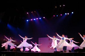 The group returned to Chennai on Dec 6, carrying unforgettable memories of their Bangalore visit. I stayed back to catch some performances of the Bengalooru Habba at the Chowdiah Hall. Bangloreans were still raving about the fabulous performance the earlier day by Padma Subrahmanyam. The evening of Kathak by Nirupama, Rajendra and the Abhinava Dance Company was preceded by a short dance piece on 'Colors of Joy' by Yamini Muthanna for Tanishq. The hall was overflowing with people spilling on to the aisles and sides. The announcer's voice was absolutely lackluster. There was a huge white Airtel banner (the main sponsor) in the center of the stage in front of the black backdrop and a video screen on either side of it projected images of Yamini's performance. The video was to draw attention to the jewellery of Tanishq.