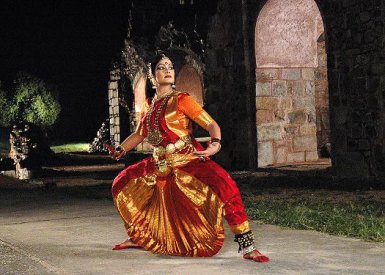 of a charged performance by dancer Geeta Chandran, in a classical Bharatanatyam