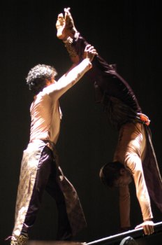 (This first appeared in Bangalore Mirror, dated January 17, 2008) Exhilarating! Utterly Brilliant! Mind-boggling! Amazing! Superbly surprising! Incredible! Frenetic! Balletic! Fantastic! Flawless! Supercalifragilistic and Expialidocious! No, I'm Not doing an exercise in adjectives! (Although in retrospect the list above could work as a handy reference guide!). What I am doing, is trying to find enough superlatives to give you a feel of a dance performance I experienced the other day! Superb is simply not succinct enough to sum up what I saw. Nritarutya's Prayog had the Chowdiah packed to the rafters with a 'standing room only' crowd of music, dance and theatre aficionados but what was really interesting was the amalgam of styles that made up the performance. Speak about space utilisation! And not leaving dead spaces of any kind. There were even guys suspended from the roof of the stage from harnesses who contributed purely with their legs from above to one of the dance sequences. As did they from the wings by getting on to each others shoulders to appear the impossible heights! WOW! The entire show was a mere three sequences, choreographed giftedly by three young dancer- choreographers. To my mind, these supremely physically fit and highly trained folks, who have worked on this show for two years I was given to understand have achieved a level of excellence that goes beyond the pale. Moreover the use, nay, the veritable unleashing of imagination and the daring "derring do" they have displayed; the unmitigated guts of combining film, both in commentary and presentation; live theatre and dance; martial arts movements; use of props including an ingenious see-saw and transparent plastic balls; using a Chinese dragon replete with dancers are an out-and-out uninhibited outpouring of high energy, exalted creativity.