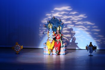 where Vishnu and Lakshmi (played by Pallavi Kumar and Srilatha Suri) are