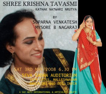 On 3rd May 2008, Seva Sadan Auditorium in Bangalore was packed with dancers, gurus, art critics and scholars like Dr. Shatavadhani Ganesh and connoisseurs of art. The theme was Sree Krishna Tavasmi.... I belong to Krishna, and was performed by Suparna Venkatesh and Mysore Nagaraj. One can relate to Krishna in several ways. One can belong to him as his shishya, his bhakta, his saka, or even as his premika. ![]() With this sentiment of belonging to the lord, Suparna and Nagaraj wove a dance tapestry through the repertoire of Kathak natwari nrutya. Commencing with a guru vandana, seeing Krishna as guru proceeded to the vision that Krishna gave guru Bindadin Maharaj that helped him create a grammar for Kathak, thus enthralling the heart of a devotee. Encapsulating the pure dance of Kathak giving a glimpse of the Krishna dance nuances as seen by Bindadin Maharaj, the dancers with bhav nrutya, explored the sentiment of his eternal love Radha. Radha belongs to him at a high level of spiritual feeling, that transcend erotic love, and unites with him, bringing an end to dualism and experiencing the sweetest union with him, an esoteric interpretation of atma and paraamatma ever united in madhuradvitam. ![]() The inauguration of the WORLD DANCE ALLIANCE - KARNATAKA CHAPTER took place on 28th April 2008, at Seva Sadana Auditorium. The chapter was inaugurated by Dr. Sunil Kothari, Vimala Rangachar and guru Bhanumathy. |