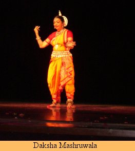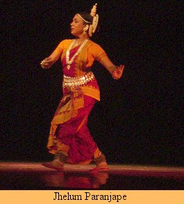Oriya abhinaya. Her rustic yellow costume complemented the prevalent