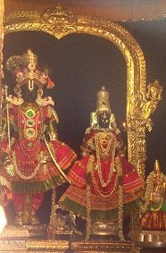 Soaking in the ambience of the hall, I slowly traced my footsteps to the inner sanctum. In an instant my eyes were transfixed for there they stood the Supreme Lord and his beautiful consort. To see beauty of this magnitude - the sense of sight was indeed roused to glorious heights. Many images have been photographed in my mind. Prominent amongst these was the 'Gho-Pooja' that is carried out at dawn. Before the yoga session, I would go to the temple. In complete silence, the first sight of the deity when the curtains were drawn was an incredible experience. There was so much positive energy. Through the Dolotsavam, all I could do was stand riveted as the Lord and his Consort were carried to the courtyard. Gracefully swinging to soul stirring music, the bejeweled deity dazzled. It was strange that although my eyes would feel like they hadn't feasted enough, every few moments I'd close my eyes almost transported to a different world with the image of the deity in my mind and the emotive music. Dance took the form of 'seva' an offering to the Supreme One who has blessed us with this art. Many of us would get up to dance to different songs. Yes, dancing before the deity was a very humbling experience, yet for the most part, I sat down soaking in this wonderful setting. The Garuda