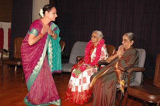 Gurus Kalanidhi Narayanan, Adyar Lakshman and Usha Raghavan, V A K Ranga Rao, Kannan, Krishnaswamy of Narada Gana Sabha, artist Maniam Selvam, Guru Muthuswami Pillai's son Selvam, Dr. Nageswaran, Saroja's principal disciple Vidya from Paris, Uday, Stephenie and Sylvia (European students), dancers and members of the media attended the event. A rare film