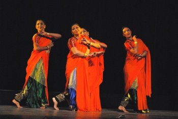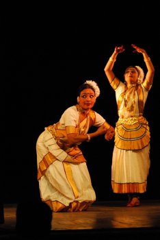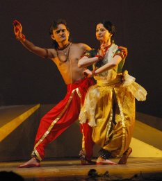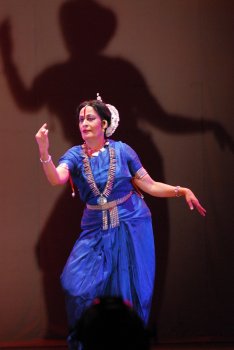 Using veils or changing the upper frills or even the jackets of the dancers' costume in quick successions for different numbers seems to have become a trend for newer choreographies in the country (nothing wrong, but seemed rather filmy to me). Well, classical dance is all about expression, gesture and movement - backed by rhythm, poetry and aesthetics. Simple! If this happens in right proportions, no monumental props or elaborate lighting stunts can add or mar a performance. For it's just about dance and a thin line that defines in using of extra embellishments (I request - fulfill your love for superfluities in Nritya Natikas or theatrical productions, if that matters). Simply because, your beautiful dance and choreography sometimes (and most of the times) gets submerged by these over powered props, electronic extra effects and even lengthy intermittent dialogue intros from the sound boxes. For instance