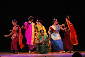 with her dancing force (literally) of sixteen Kathakar dancers to encompass