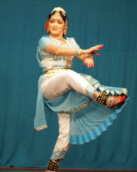 Vasundhara chose the story of the Ganga, the holiest of Indian rivers based on the theatrical script Ganga Lahari of Sri Udyavara Madhava Acharya. Combining graceful movement, amazing body control in various still positions and touching abhinaya, Vasundhara depicted the different stages of Ganga. Ganga is one female in Indian scriptures who has played almost all roles of a woman in life viz., daughter, lover, wife, mother etc. Vasundhara enthralled the audience for close to 2 hours of non stop dance starting the story from the courts of Indra till the end where she requests us not to pollute her. Whether it was the youthful Ganga loving Mahabhisha, ardent devotion of Bhagiratha or the pleading Shantanu, Vasundhara's portrayal of each character was greatly appreciated by the audience. P Ramaa as
